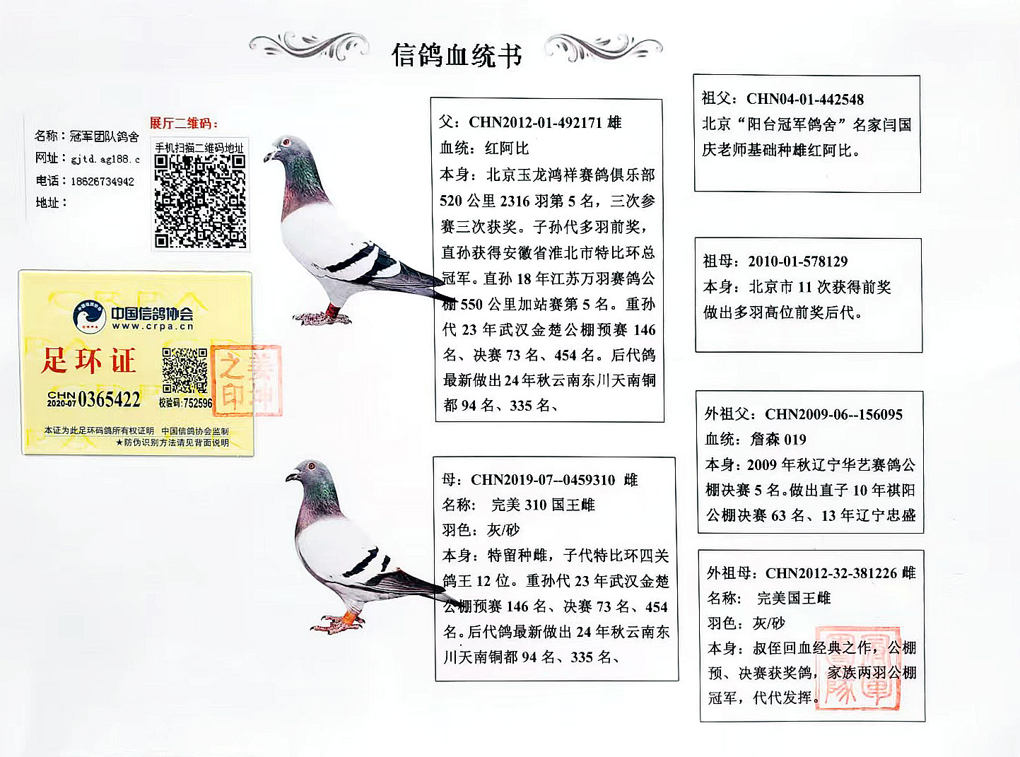 空间有限0元分享,假一赔百,拒卖百家鸽。机不可失。成绩、血统永久保真。血统书足环卡随鸽发出。