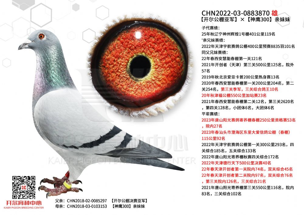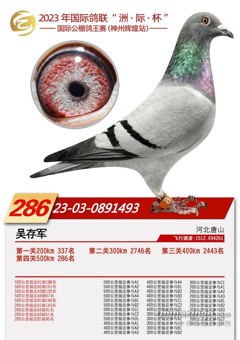 1628673 开尔春棚决赛6名,精英赛季军×24年唐山阳光四关鸽王50名 ¥3500元 2次