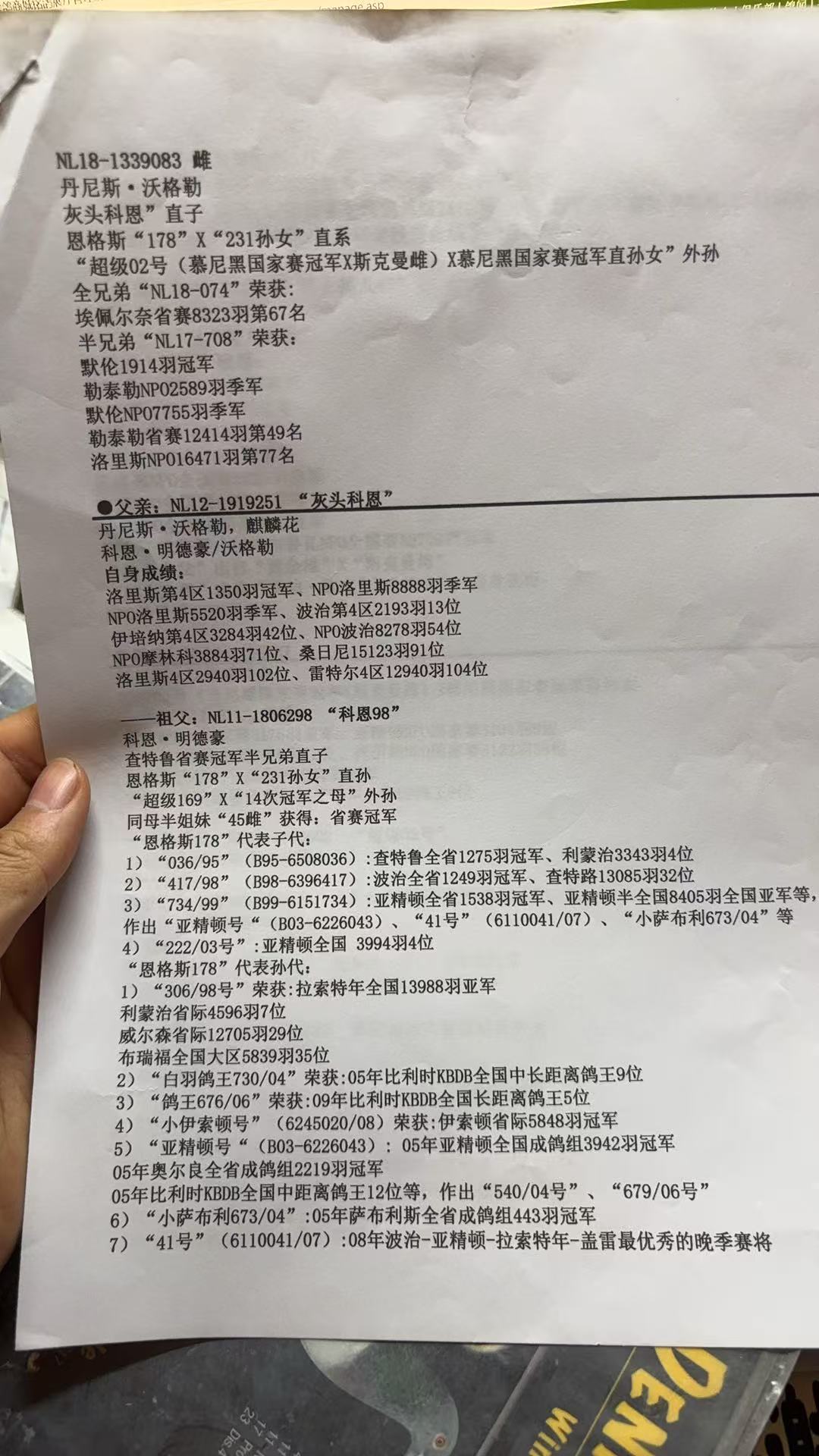 - 当前查看拍卖鸽:丹尼斯金母、冠军母亲