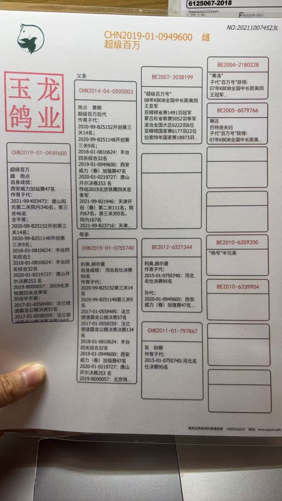 | 1631408 | 超级百万号、KBDB鸽王亚军 | ¥100000元 | 0次 |