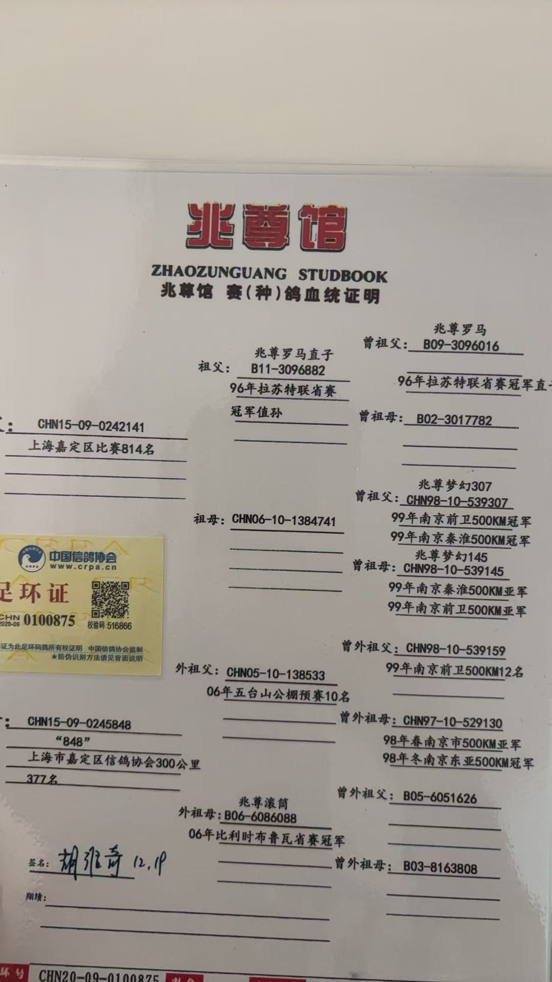 | 1631408 | 超级百万号、KBDB鸽王亚军 | ¥100000元 | 0次 |