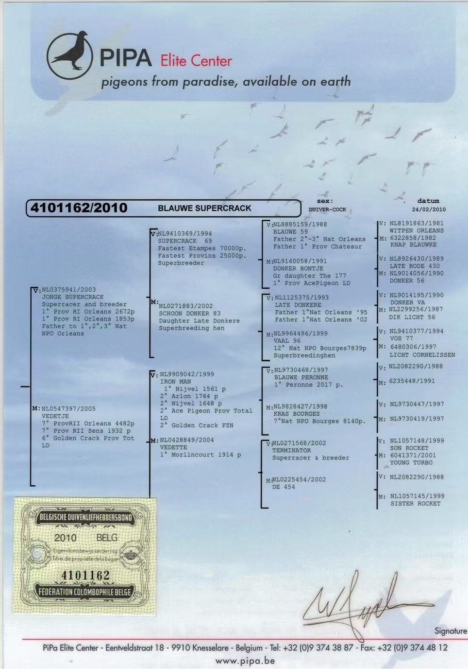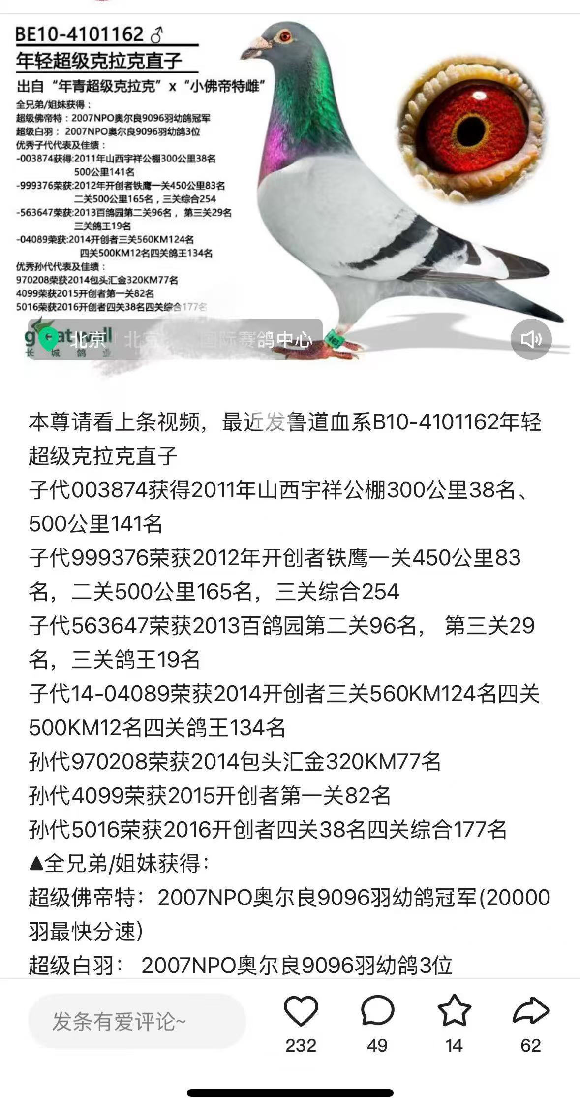 | 1632159 | 卡普鸽王、多羽高位父亲 | ¥1200元 | 4次 |