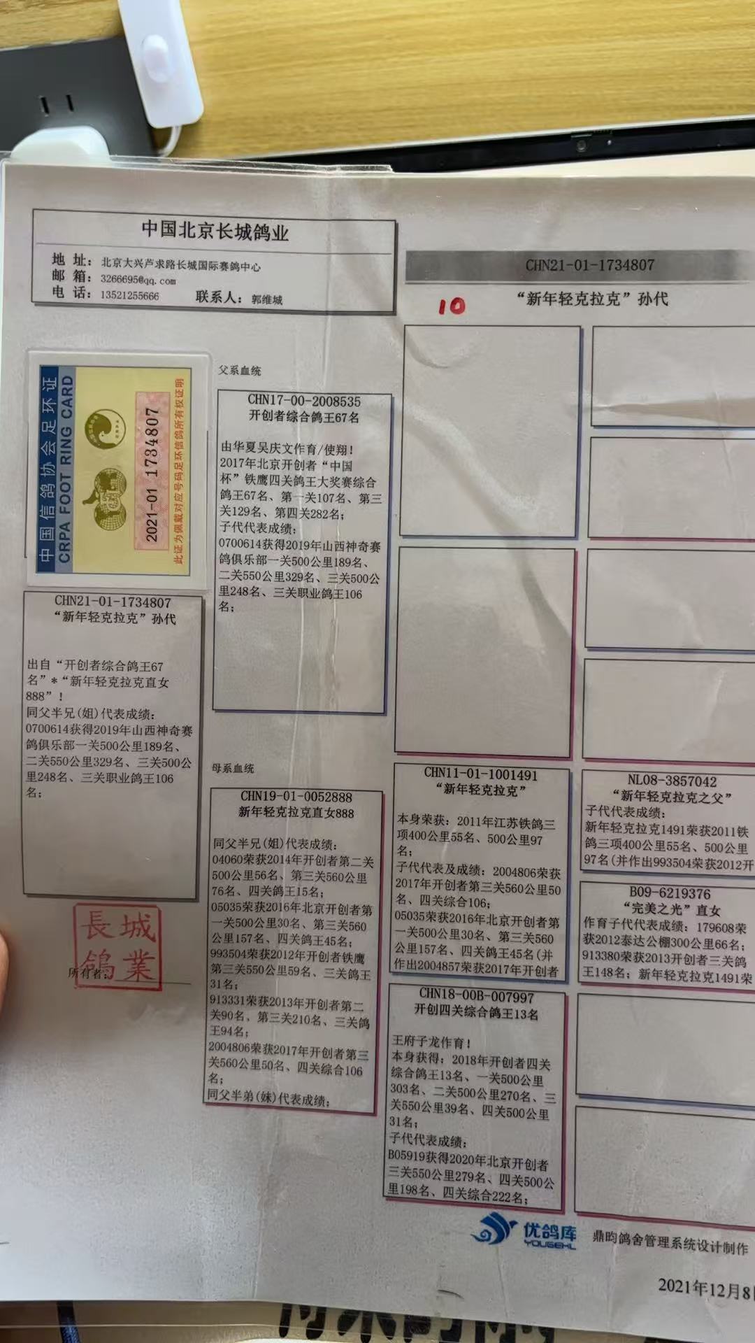 | 1632159 | 卡普鸽王、多羽高位父亲 | ¥1200元 | 4次 |