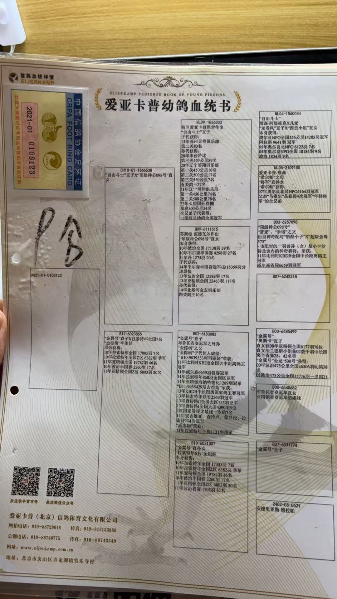 | 1632159 | 卡普鸽王、多羽高位父亲 | ¥1200元 | 4次 |