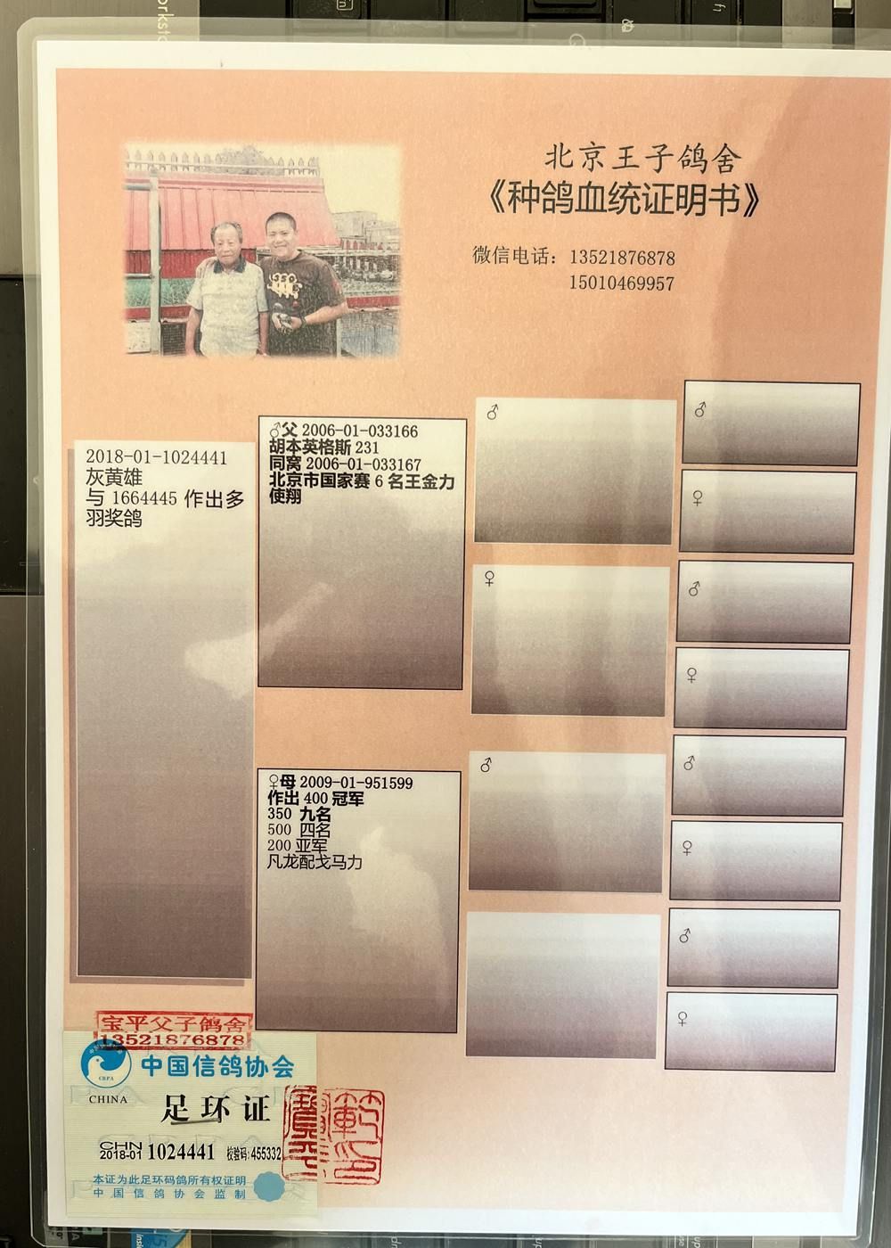 鸽主:北京王子鸽舍-范宝平 """