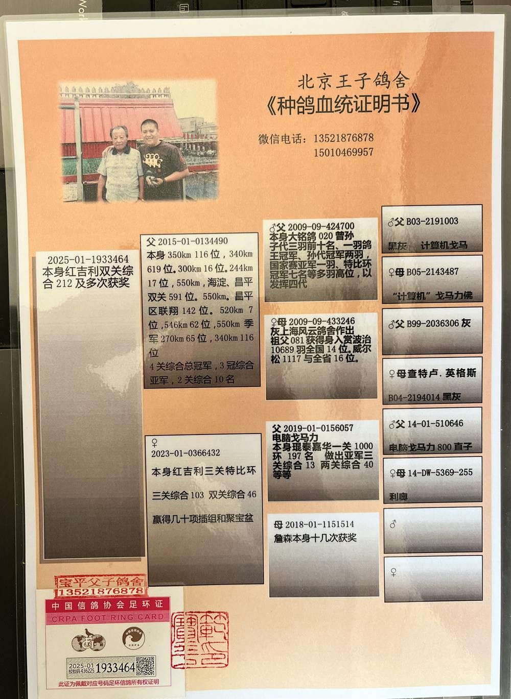 本身:北京红吉利赛鸽俱乐部450公里574名;
