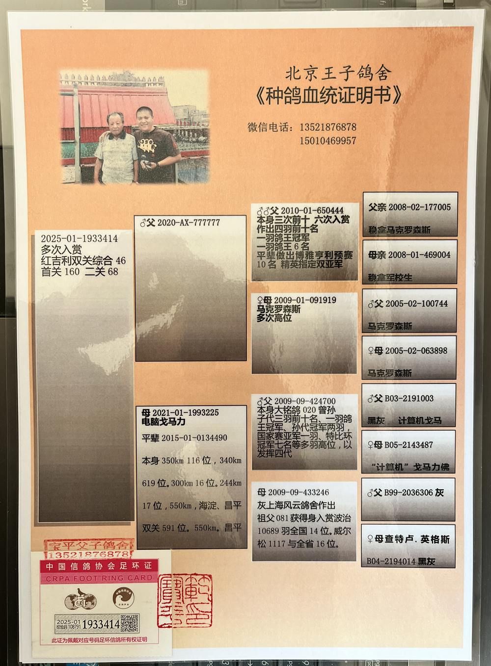 - 当前查看拍卖鸽:北京红吉利赛鸽俱乐部双关综合鸽王46名