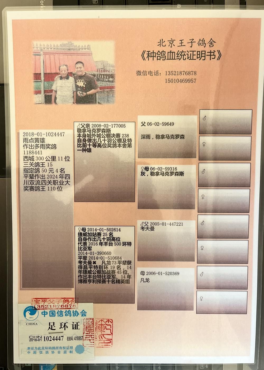 "作出多羽奖鸽,同窝作出1188441西城300公里11位,三关鸽王15,