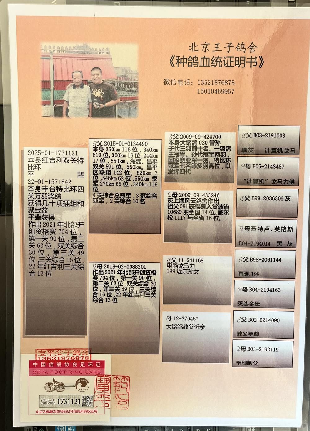 本身:北京红吉利赛鸽俱乐部450公里419名;