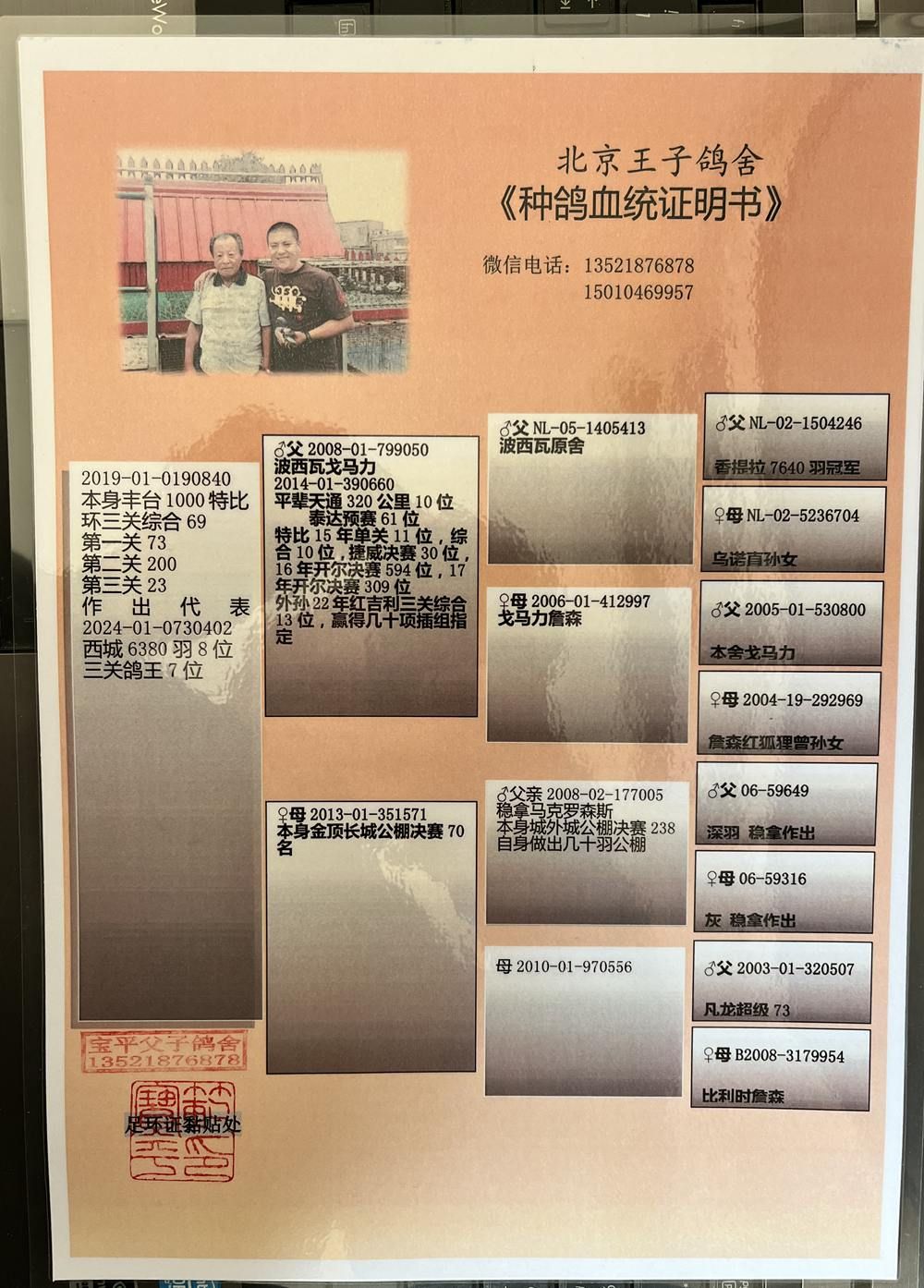 鸽主:北京王子鸽舍-范宝平 """