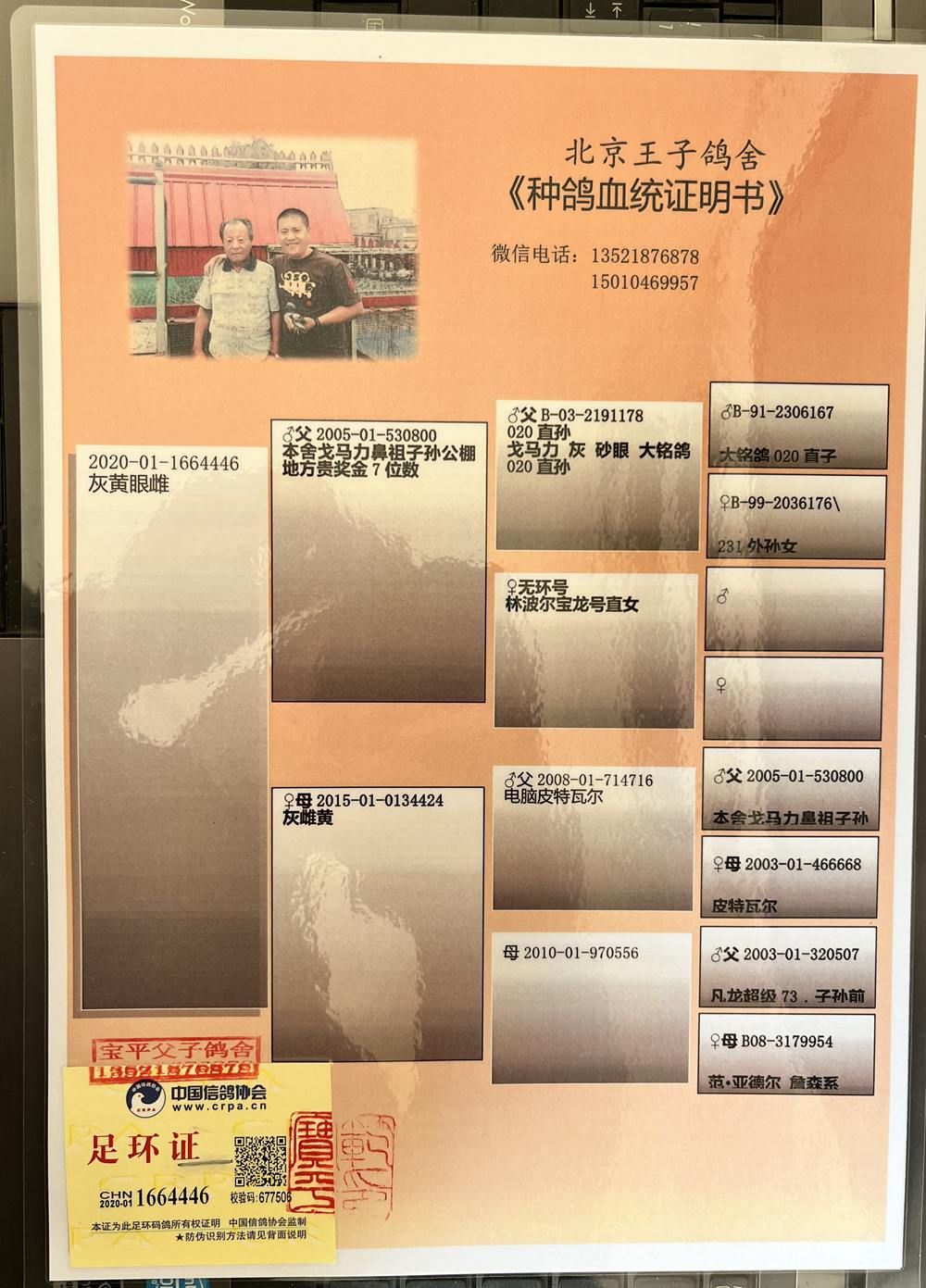 - 当前查看拍卖鸽:北京王子鸽舍-戈马力446 雌