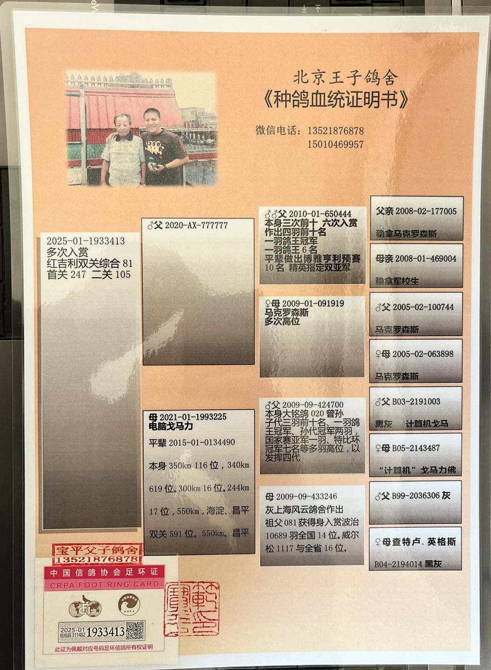 - 当前查看拍卖鸽:北京红吉利赛鸽俱乐部双关综合鸽王81名