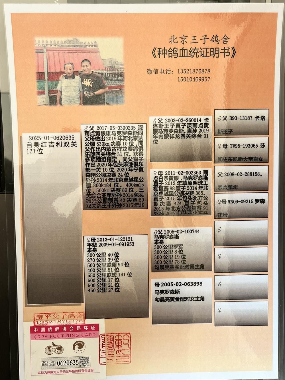 - 当前查看拍卖鸽:北京红吉利赛鸽俱乐部双关综合鸽王123名