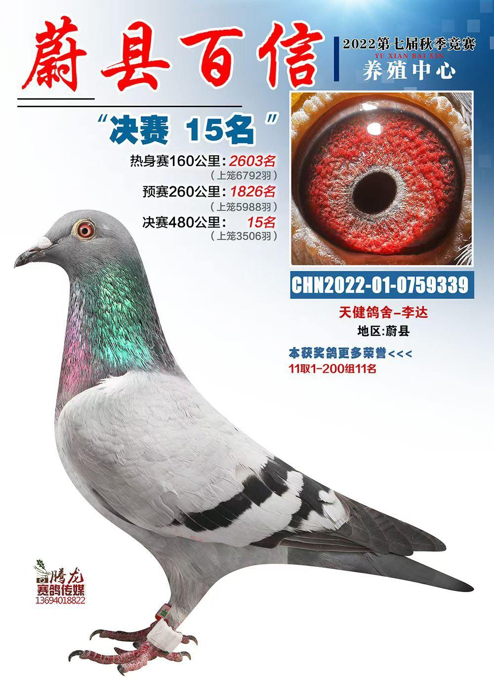 河北蔚县百信信鸽养殖中心480公里决赛15名;