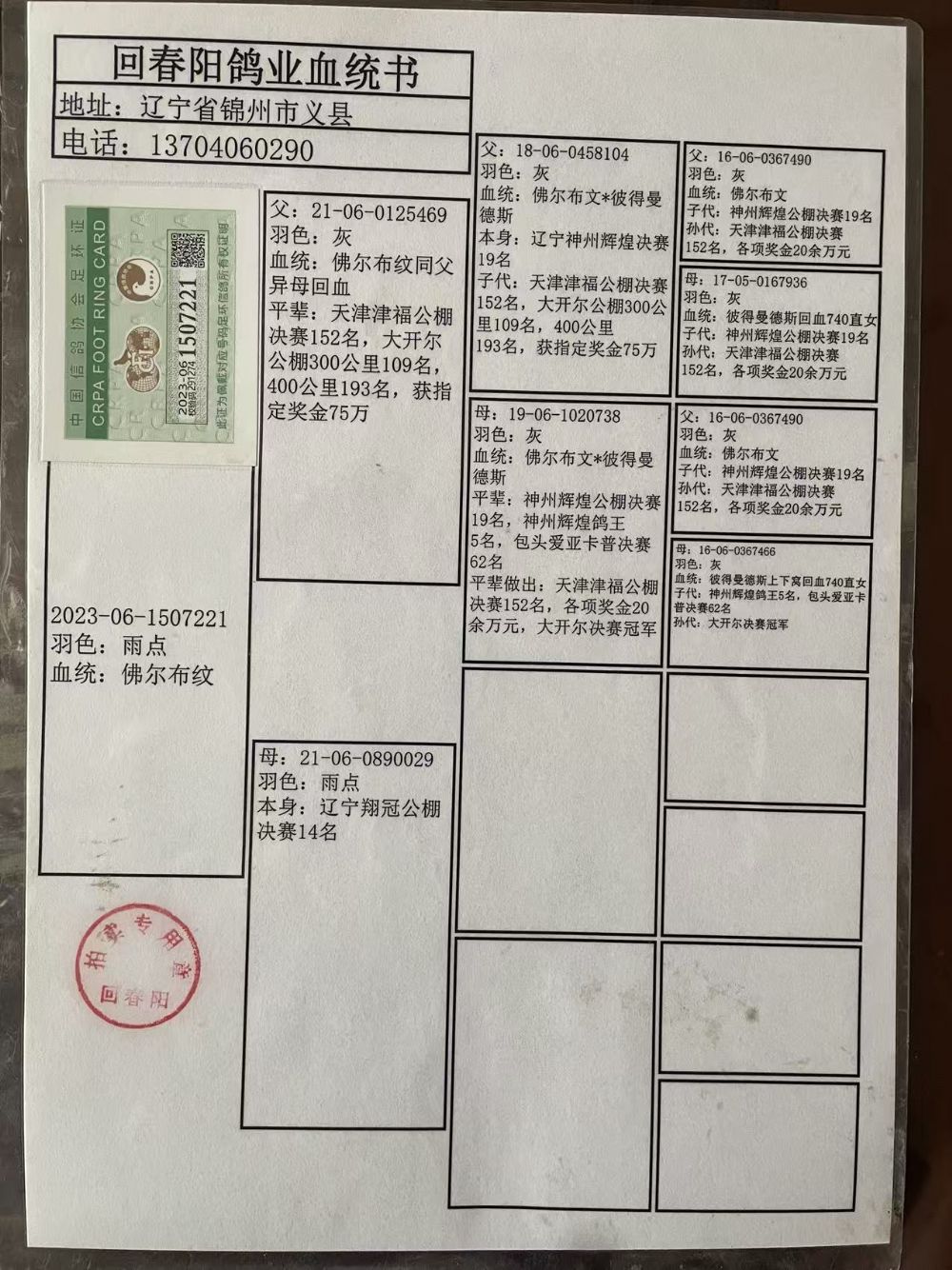 - 当前查看拍卖鸽:回春阳作育200公里12名
