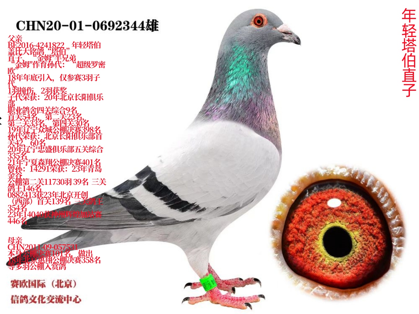 注明:此鸽为电子版血统书,介意勿拍