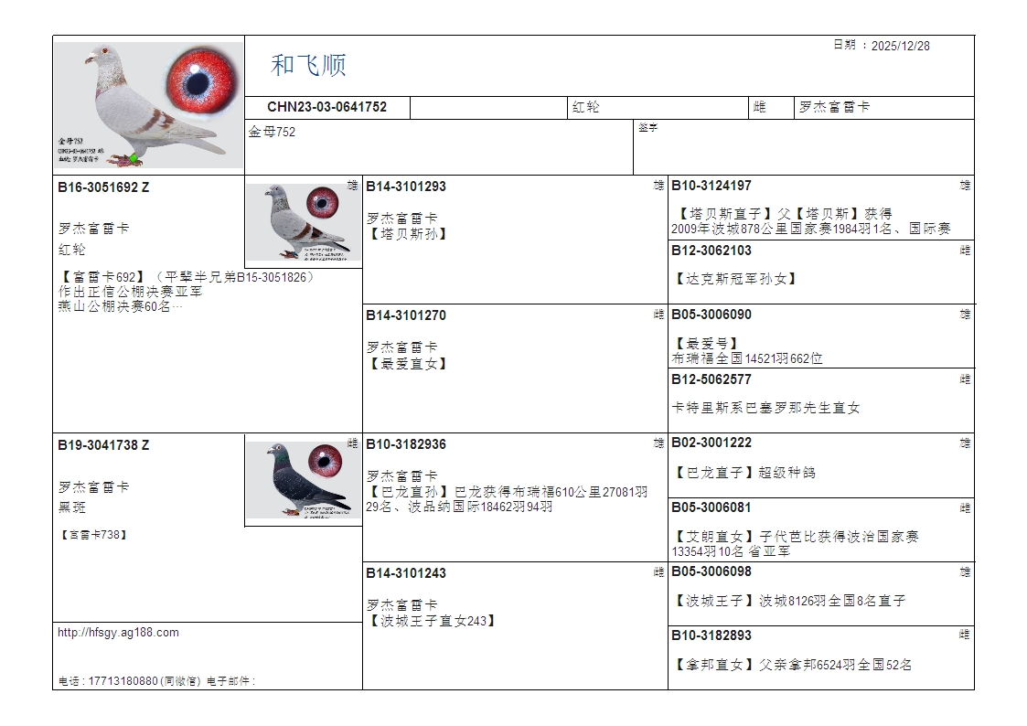 - 当前查看拍卖鸽:罗杰富雷卡 金母752