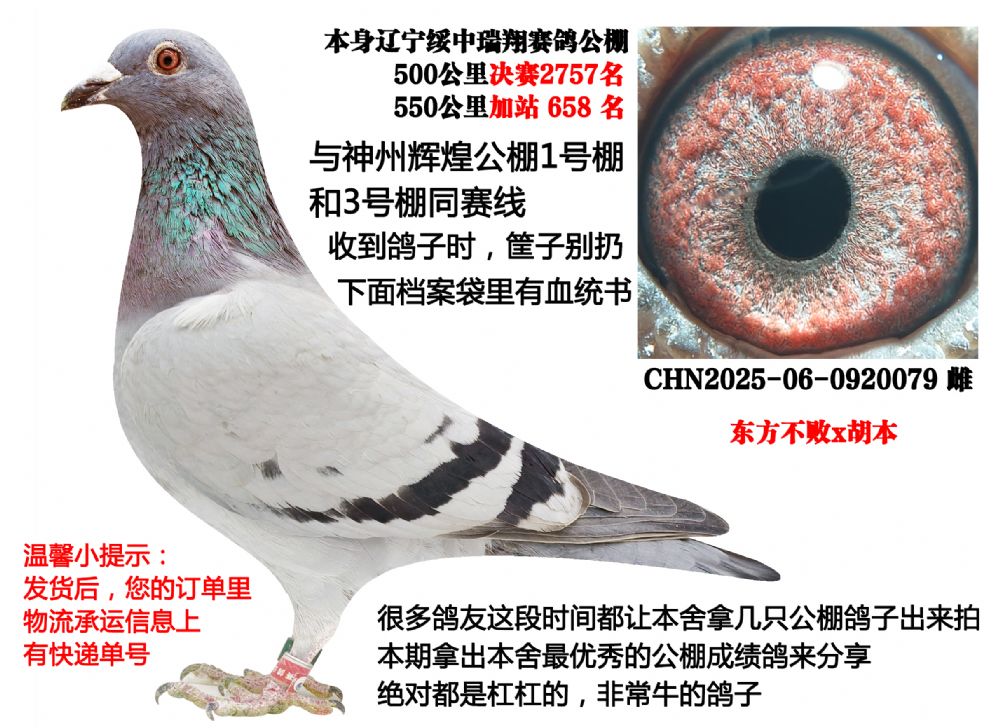 | 1636929 | 东方不败x神州大绛(创翼公棚获奖鸽)与神州同赛线 | ¥300元 | 1次 |