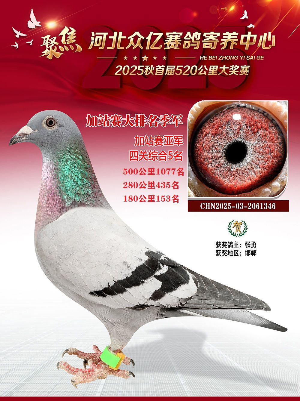 河北众亿赛鸽寄养中心加站赛季军