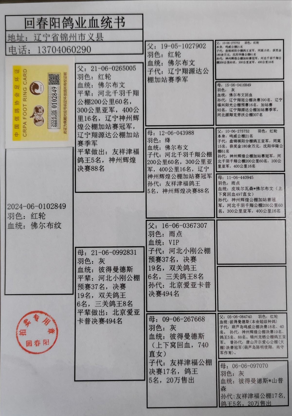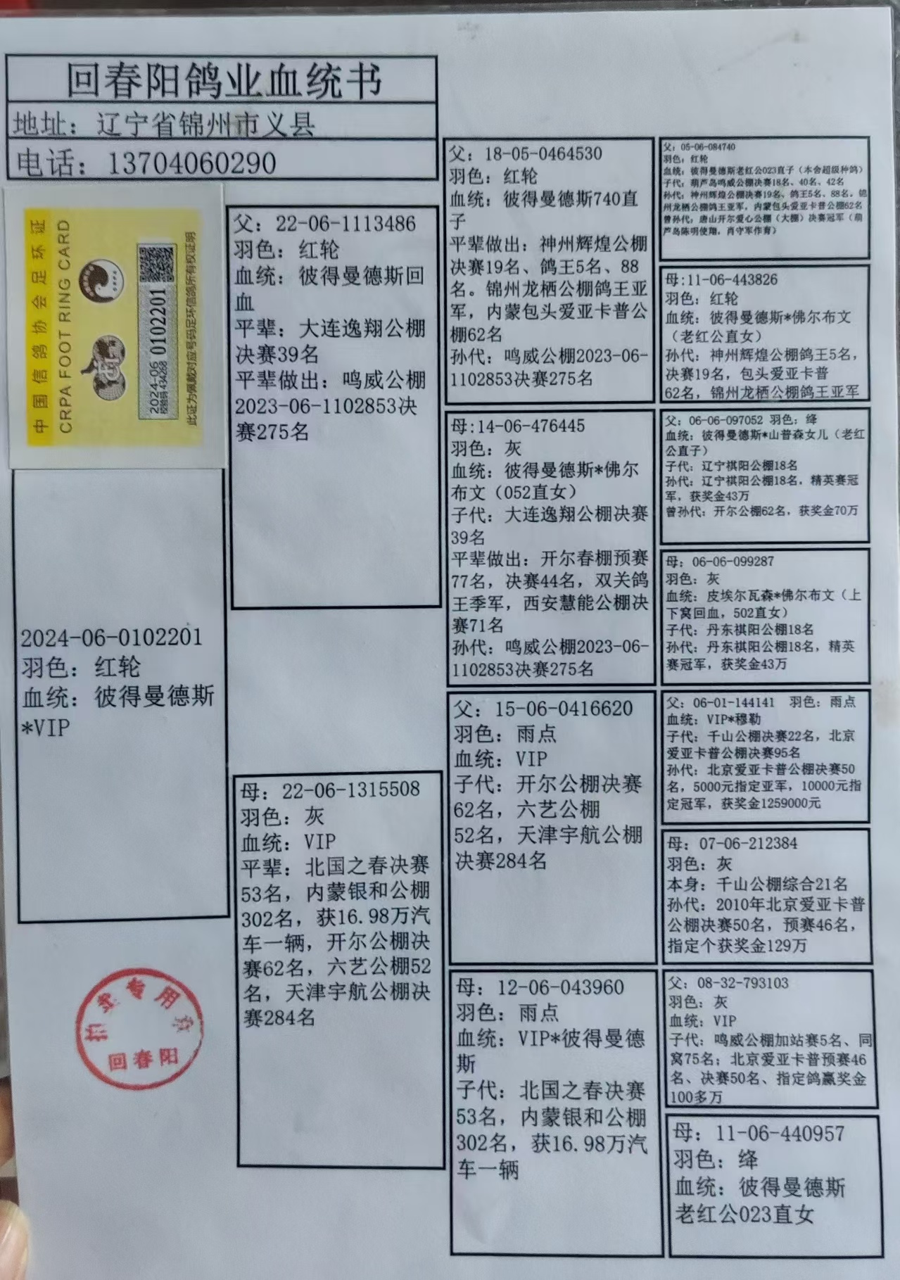 | 1637079 | 回春阳:彼得曼德斯回血特留种鸽608 | ¥200元 | 1次 |