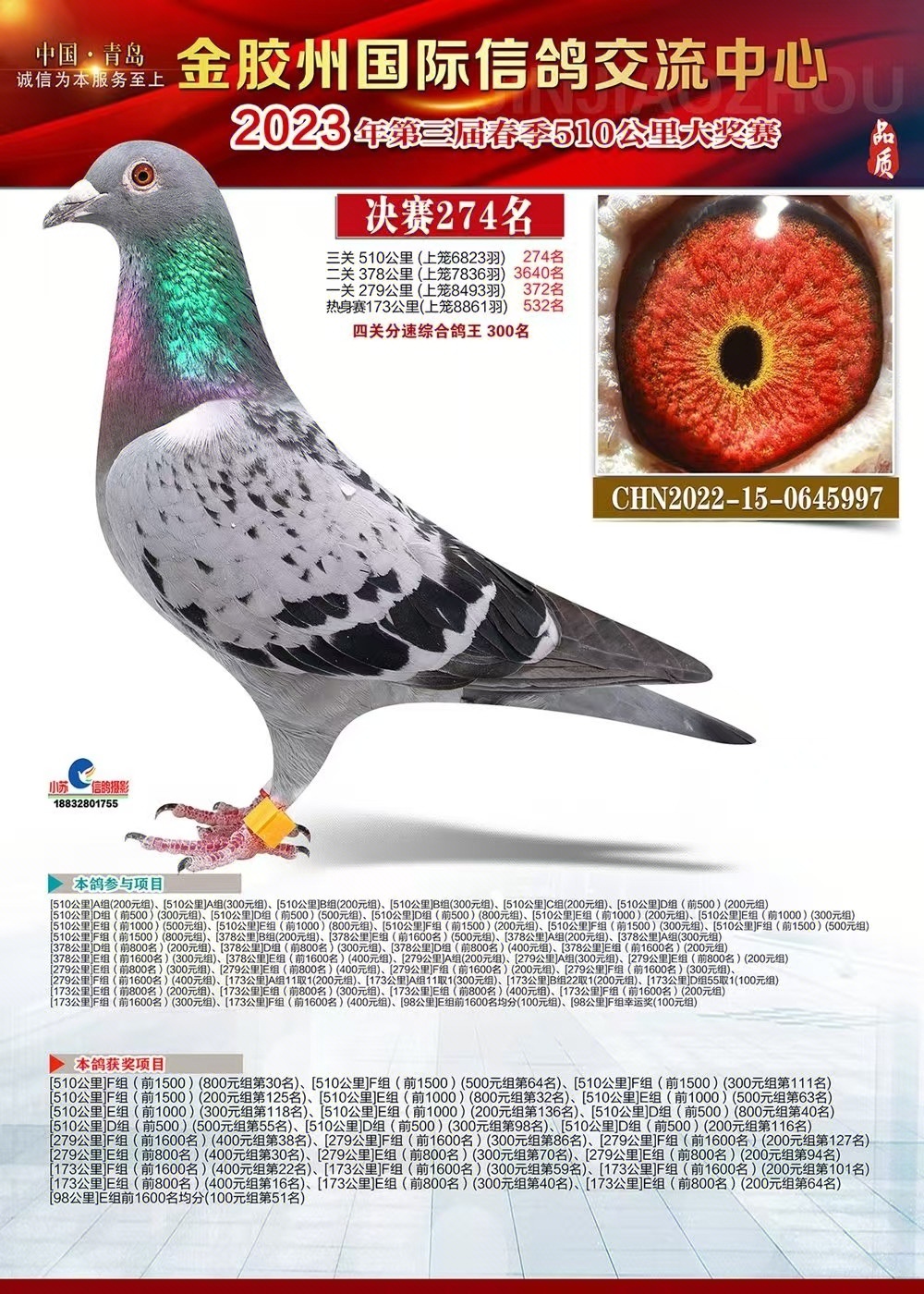 唐山阳光小棚200公里132名,决赛获加奖,加站赛899名。