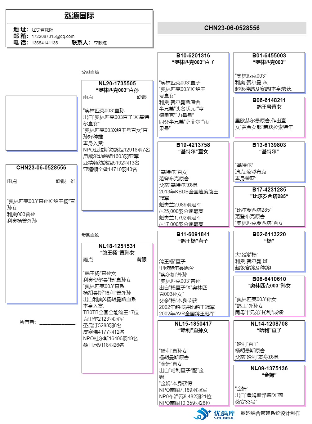 “奥林匹克003”直孙X“鸽王杨”直孙女