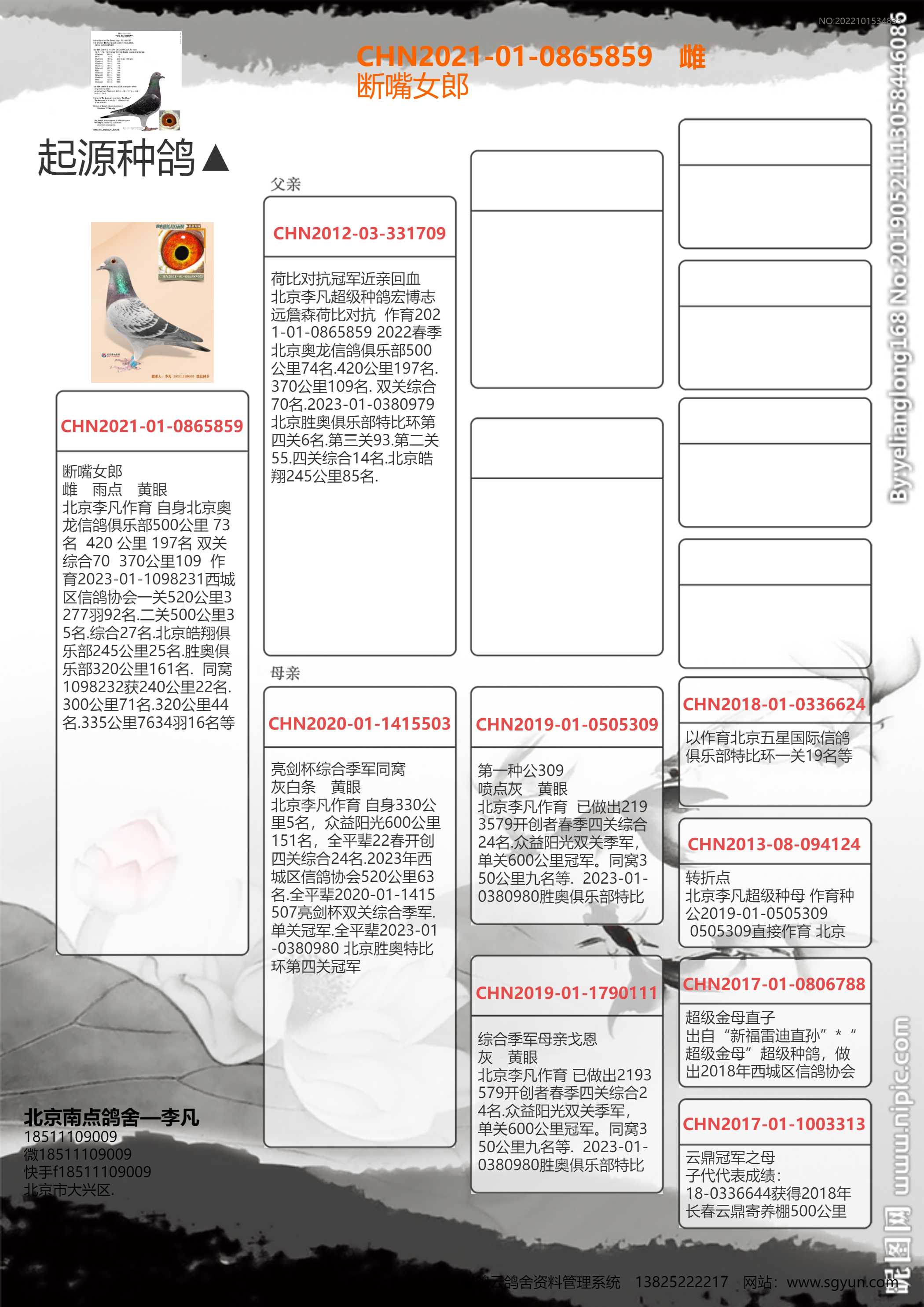 - 当前查看拍卖鸽:李凡:21-01-0865859
