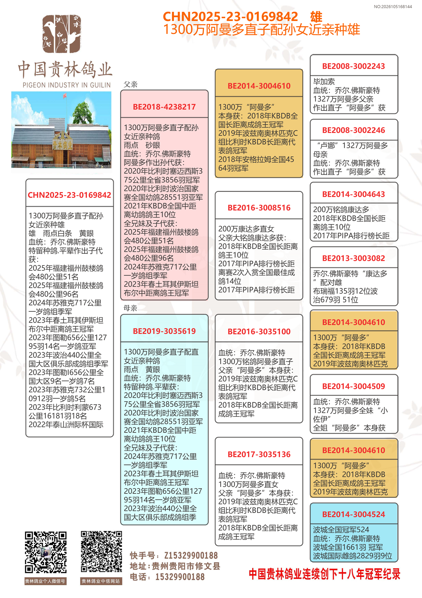 1300万阿曼多直子配阿曼多孙女近亲种雄.平辈作出冠亚军多羽