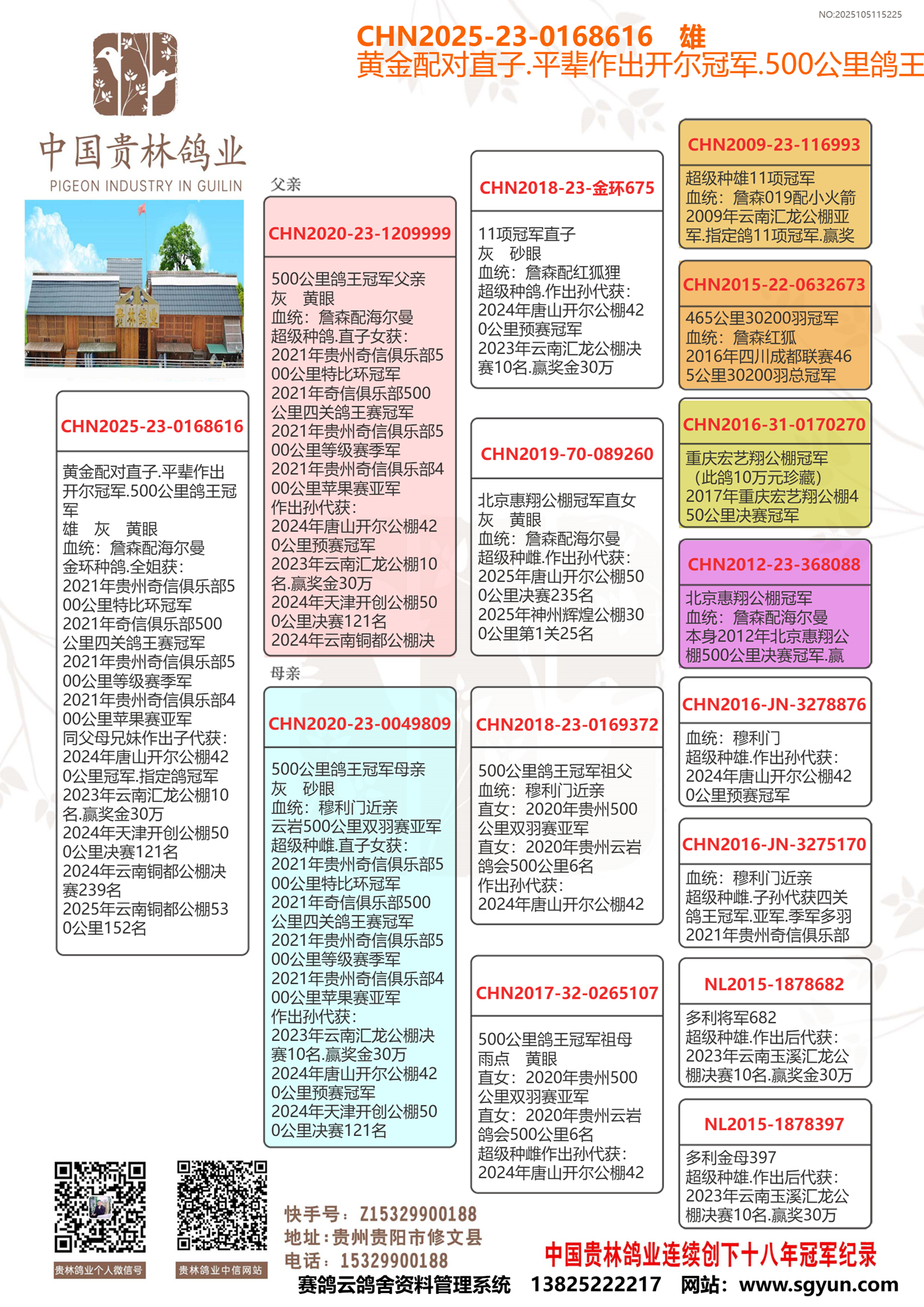 ★贵林鸽业2006年至2024年连续创下十八年冠军记录!200公里冠军.300公里冠军.400公里冠军.500公里冠军.公棚冠军.特比环冠军.三关鸽王冠军.四关鸽王冠军.大小冠军无一缺席!