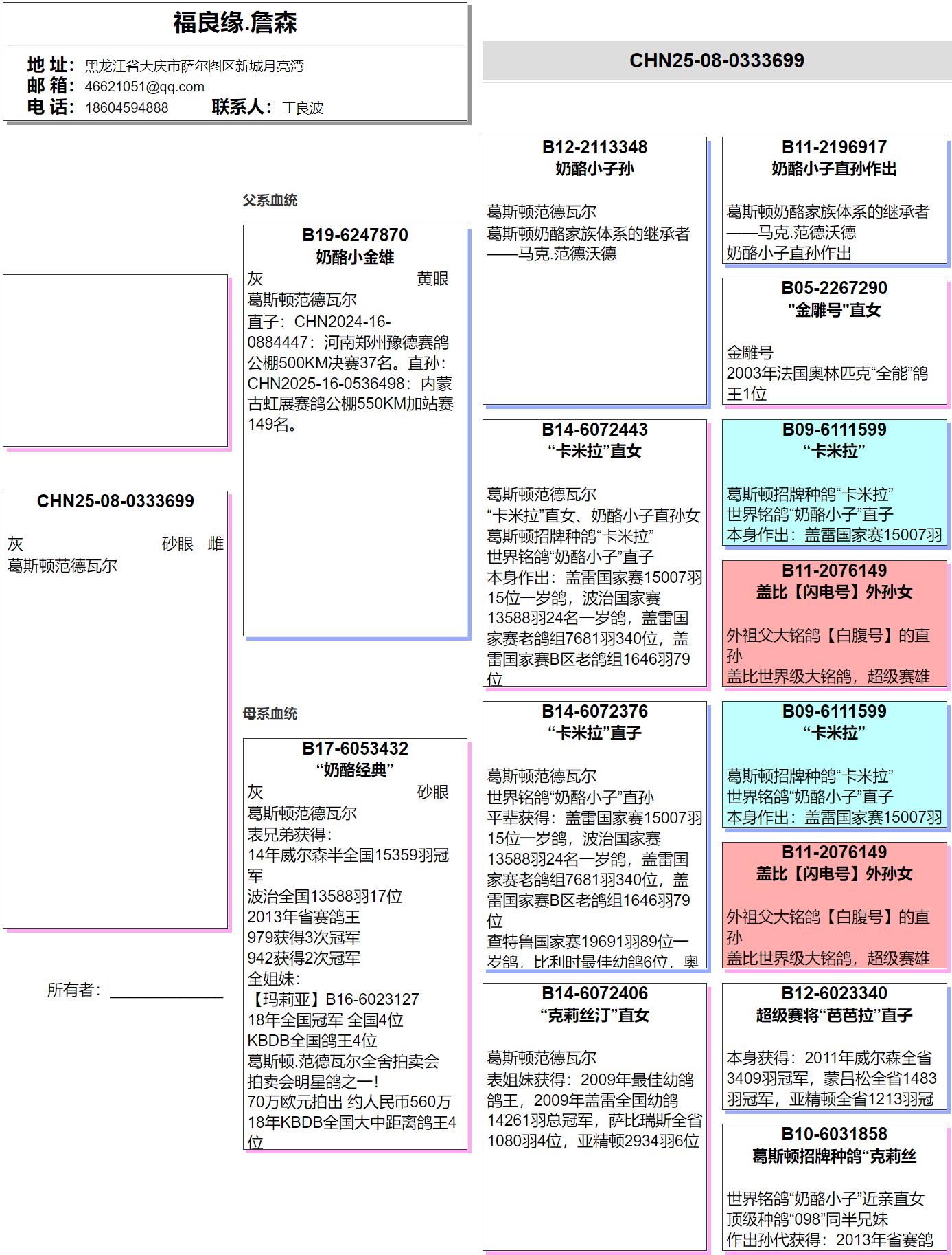 曾外祖父:B09-6111599 葛斯顿招牌种鸽“卡米拉”