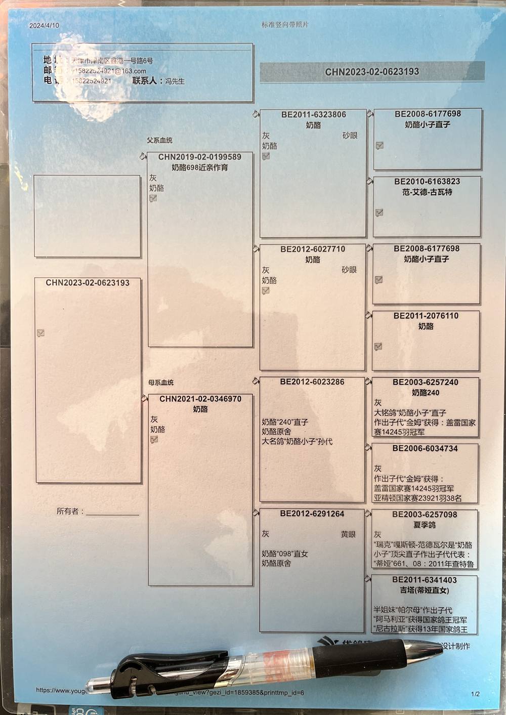- 当前查看拍卖鸽:天津华冶-贾彪----奶酪193 雌