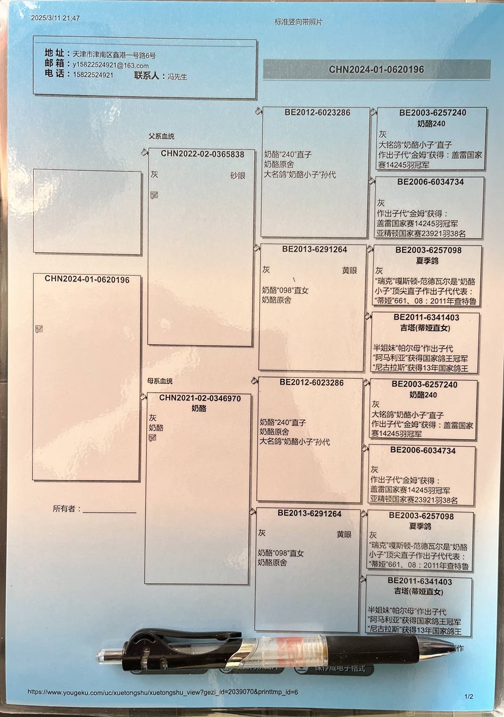 - 当前查看拍卖鸽:天津华冶-贾彪-----奶酪196