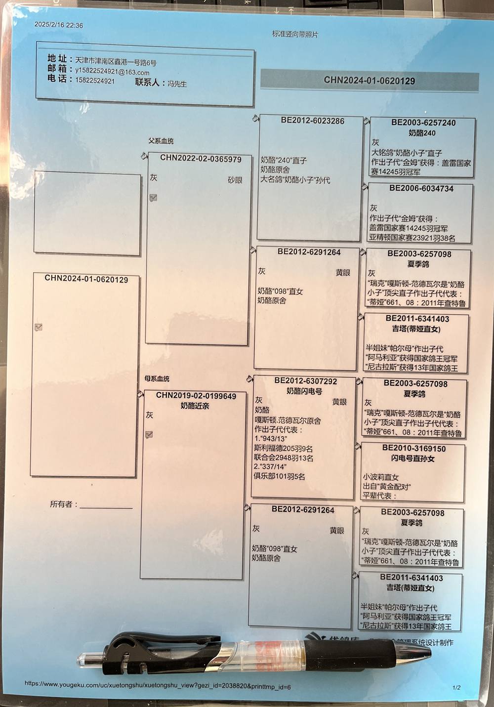 - 当前查看拍卖鸽:天津华冶-贾彪--奶酪129 雌