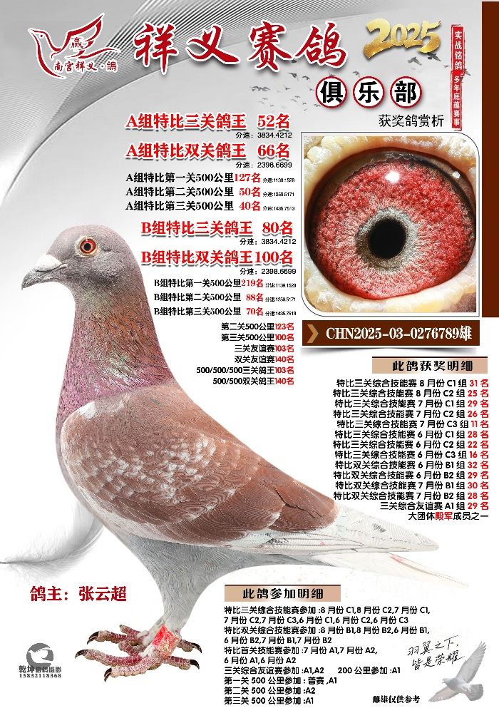 | 1639872 | 祥义俱乐部A+B组季军 | ¥2500元 | 3次 |