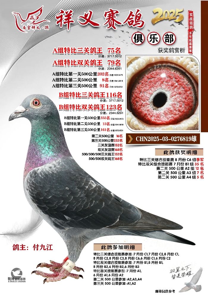 | 1639872 | 祥义俱乐部A+B组季军 | ¥2500元 | 3次 |