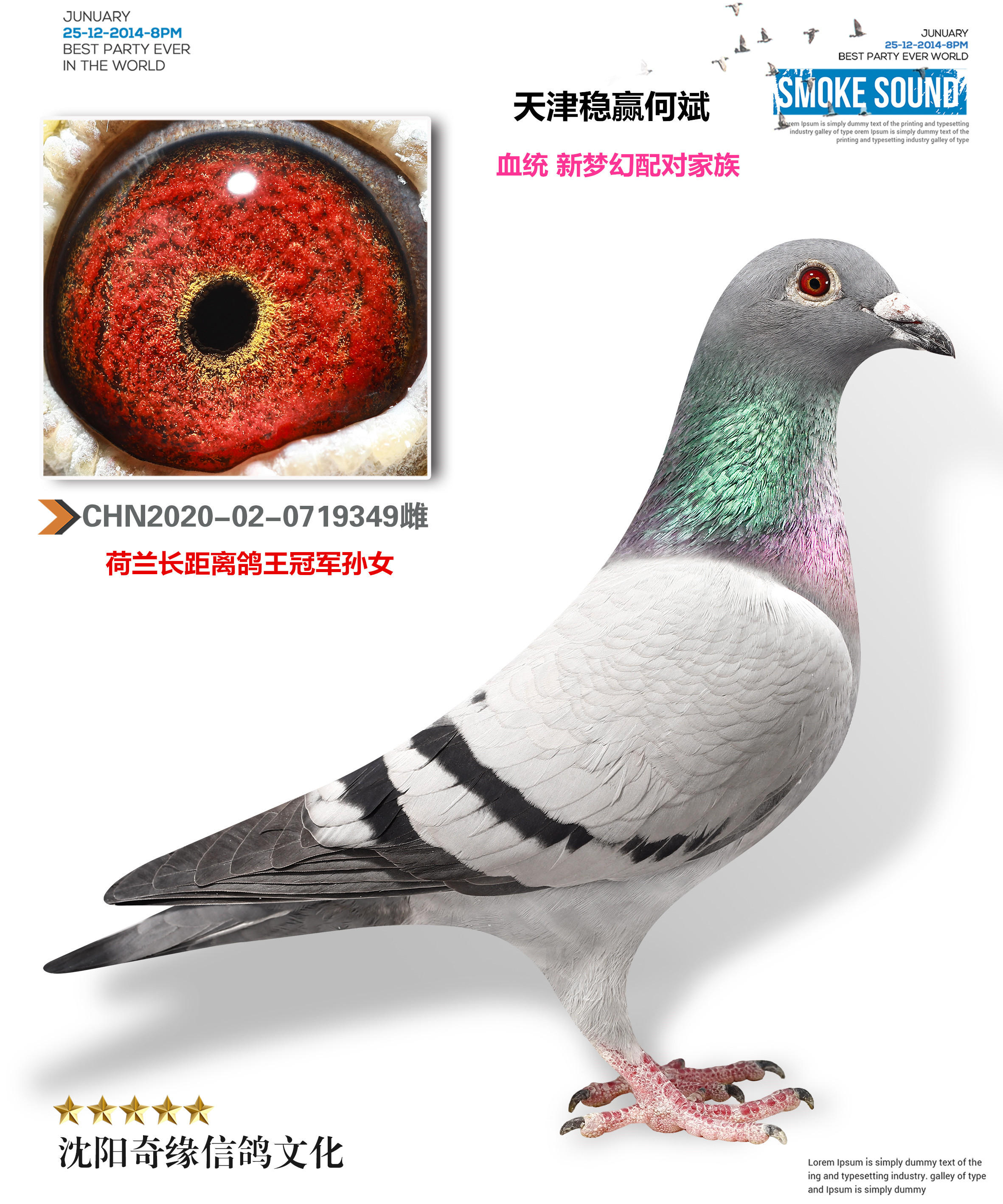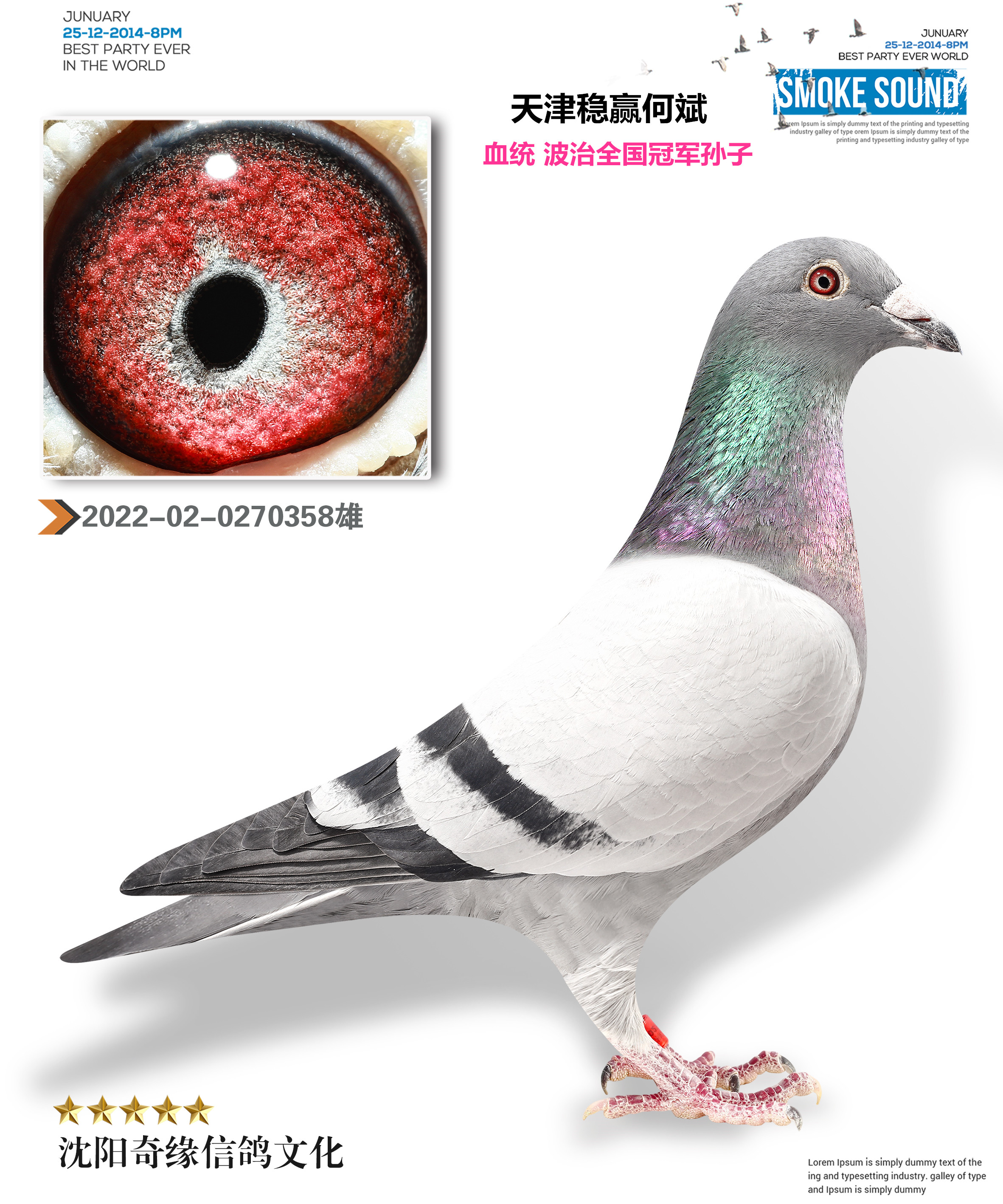 2、注明:鸽子在照片制作中,通常会使用Photoshop的图片翻转功能,造成视觉上足环位置的颠倒(左右脚互换),鸽子足环的位置以实物为准;