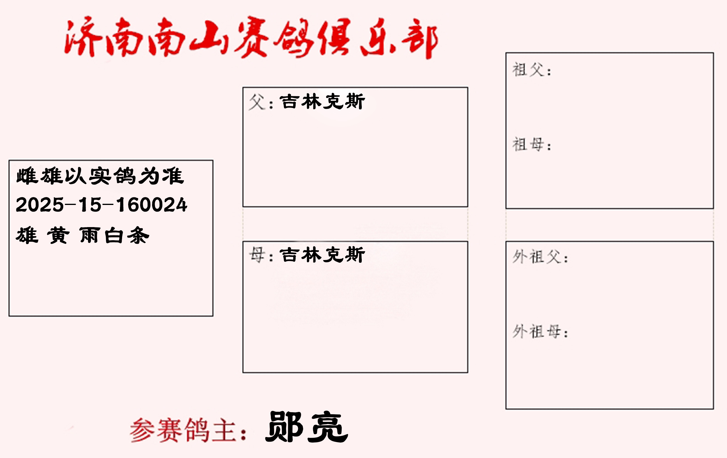 | 1640316 | 500公里决赛38名,四关综合鸽王26名 | ¥500元 | 0次 |