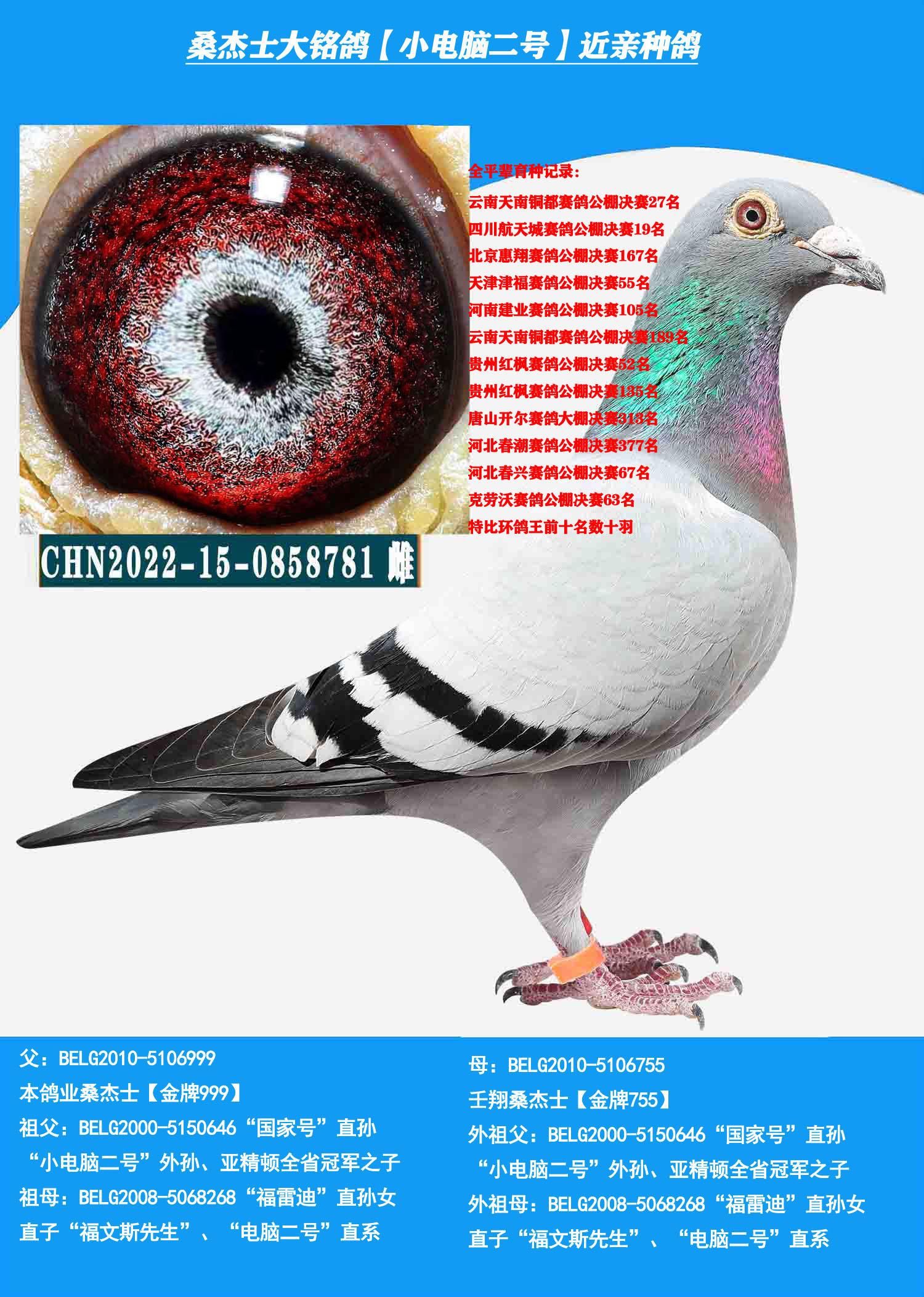 臻藏金母(恶劣天气 吃苦耐劳) 桑杰士多关赛首推种鸽