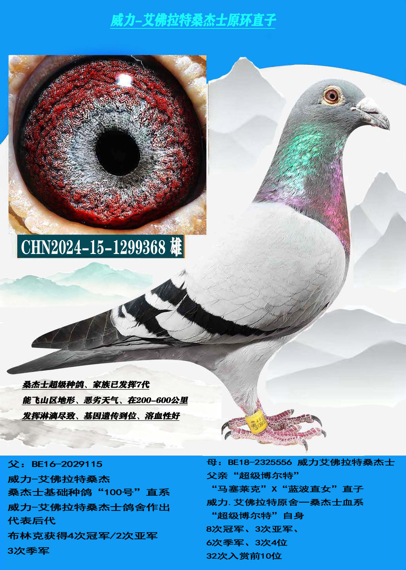 1640833 臻藏金母(恶劣天气 吃苦耐劳) 桑杰士多关赛首推种鸽 ¥600元 1次