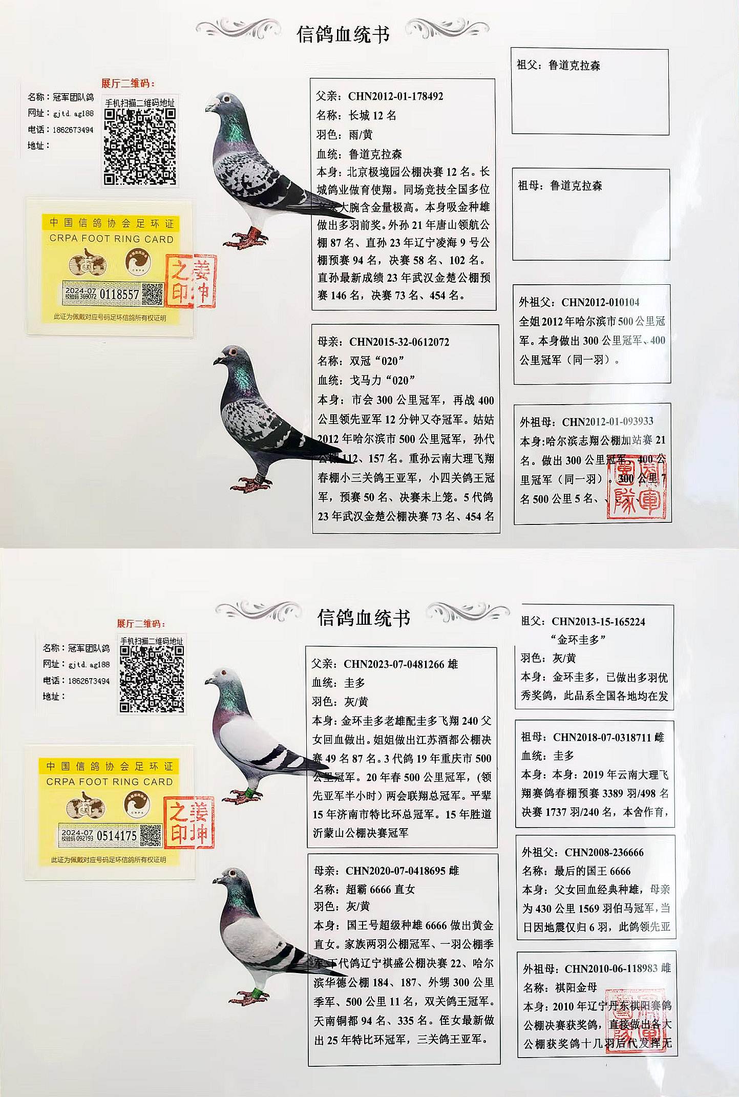 ***支援湖北武汉鸽友的鲁道克拉森喜获24年武汉博达公棚三关鸽王54位。赢得多项指定。