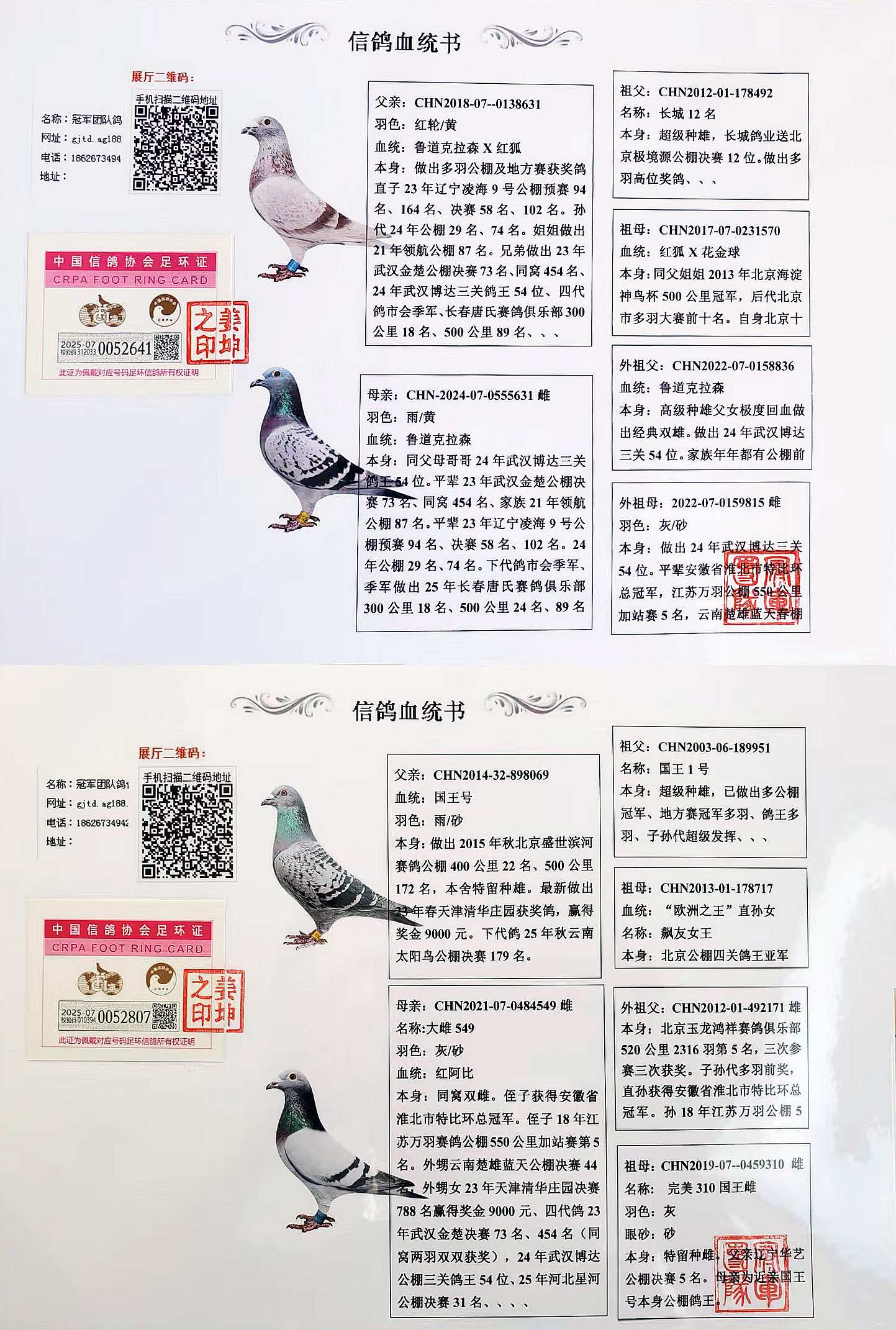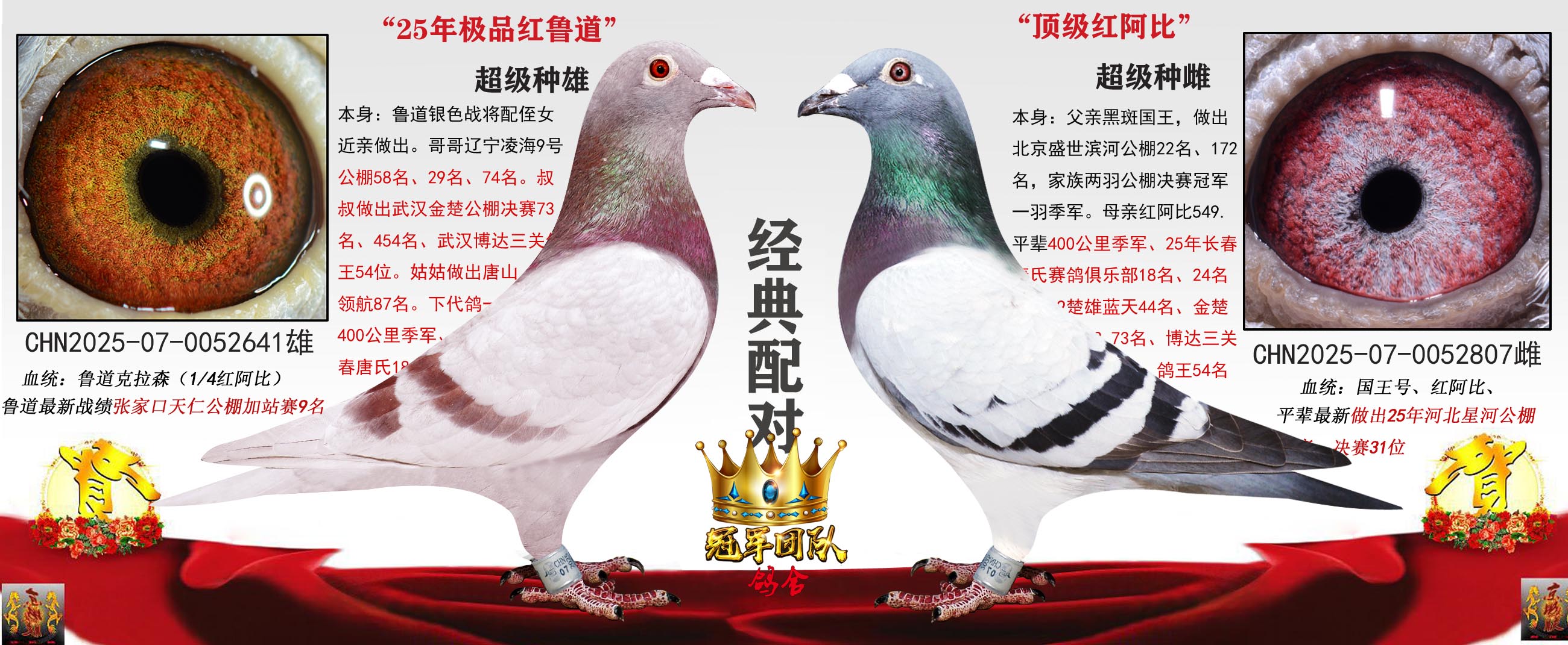 ***支援支援北京鸽友张先生的国王号X红阿比X胡本喜获2025年河北星河公棚决赛31位、鲁道喜获25年河北天仁公棚加站赛9名的好成绩。