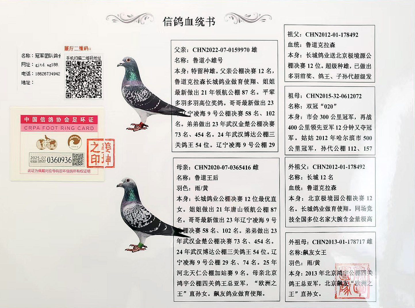 空间有限0元分享,假一赔百,拒卖百家鸽。机不可失。成绩、血统永久保真。血统书足环卡随鸽发出。