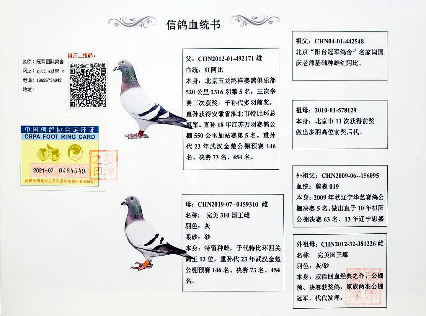 空间有限0元分享,假一赔百,拒卖百家鸽。机不可失。成绩、血统永久保真。血统书足环卡随鸽发出。