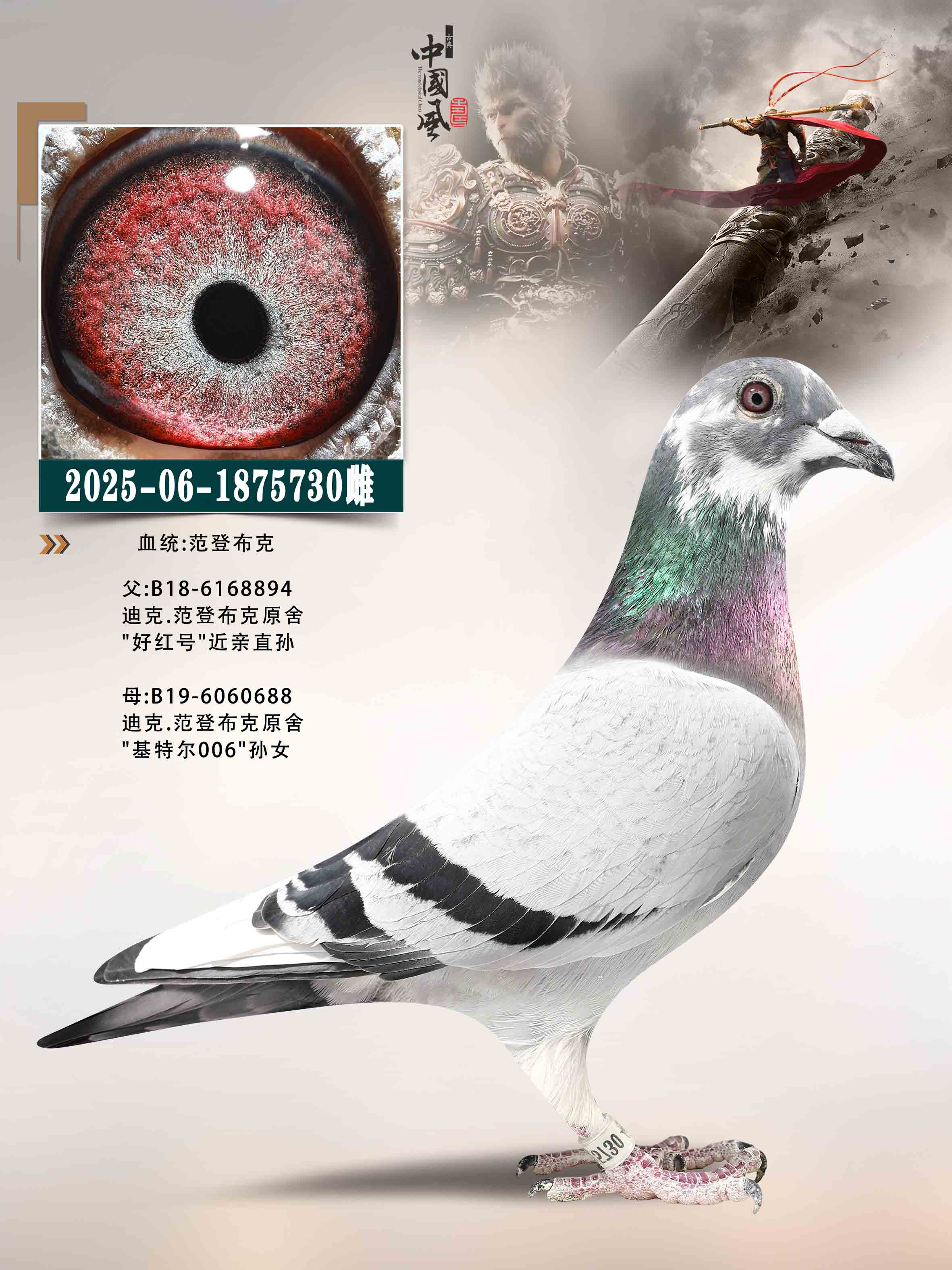 - 当前查看拍卖鸽:范登布克:好红号直孙x基特尔006孙女7