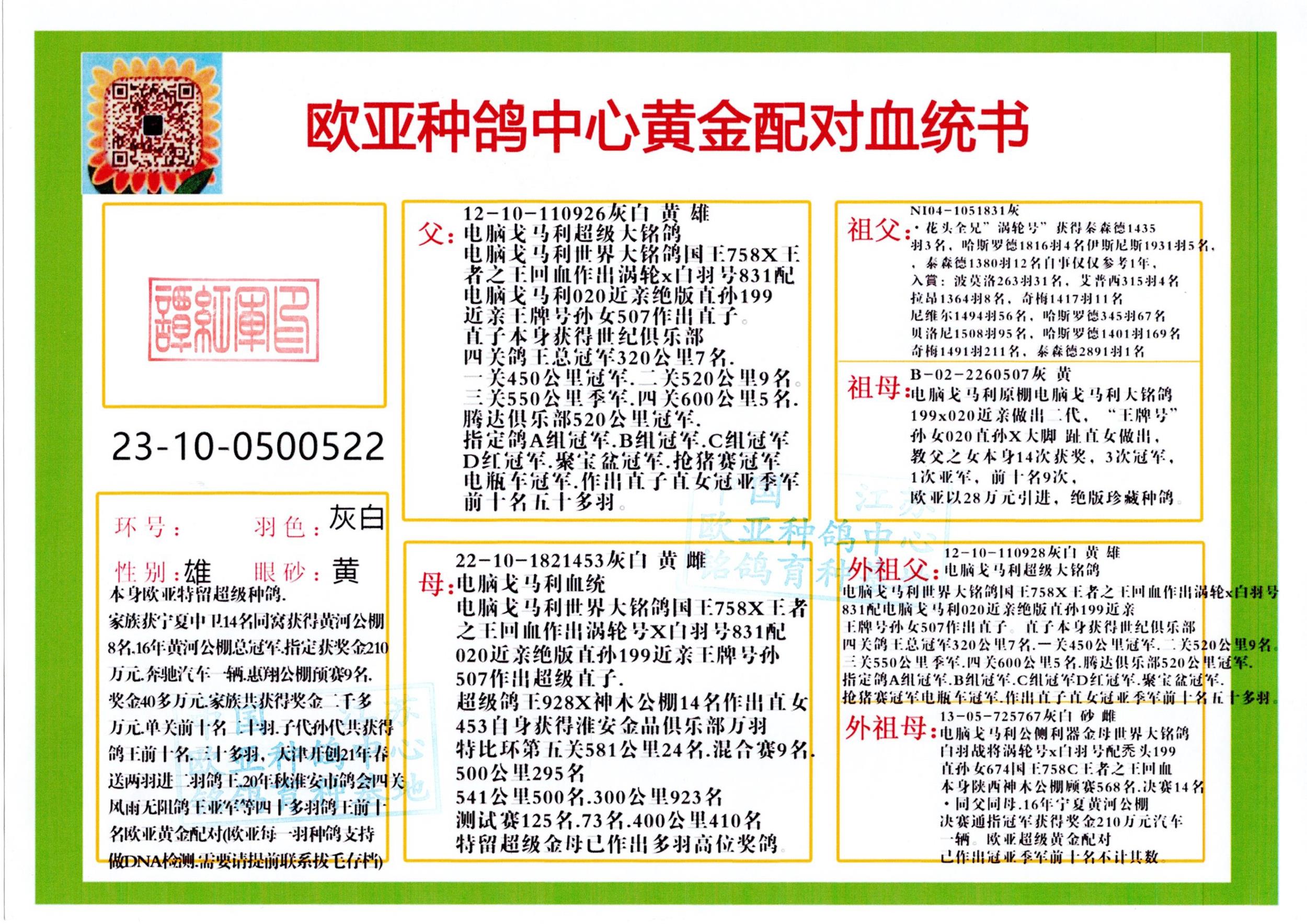 24年秋南京特比环欧亚荣获大团体冠军.小团体冠军551公里大特比13名.14名.16名.19名.20名.21名.24名.26名.27名.28名.42名.52名.54名.57名.65名.66名.68名.70名.71名.72名.74名.76名.80名.82名.83名.84名.85名.86名.90名.92名.110名.116名.121名.122名.128名.131名.158名.161名.164名.165名.166名.172名.174名.177名.182名.195名.196名.201名.205名.208名.210名.216名.253名.269名.275名.276名.294名.296名.299名,,24年秋云南天南铜都公棚决赛415名.天南铜都小棚决赛409名.云南玉活公棚决赛102名.490名.团体32名上笼二羽进二羽,天南铜都大棚506公里决赛445名。热烈祝贺河北省巨鹿县李兰生老师用欧亚泰山号血系连续十一年夺冠军,河北省国家赛冠军.全国季军等多次前十名高位,扬州王军王总用欧亚利奥24年春季获山东翔宇公棚决赛33名盖比53名。南京刘正龙刘总用欧亚盖比获得24年秋山东潍坊国际公棚决赛42名.精英赛30名.三关鸽王71名.决赛86名.加站赛16名.南京市特比环A组鸽王9名.B组鸽王5名.6名.C组鸽王5名.精英赛冠军4名.技能赛A组冠军4名.5名.秦淮区特比环荣获15名.46名.48名.87名。四川西昌徐亮徐总用欧亚利奥获得凉山州聚友决赛177名.第二关亚军双关鸽王19名.三关鸽王105名.云南豪庭公棚决赛603名。热烈祝贺24年四川重庆翔园鸽舍用欧亚泰山号荣获春季400公里冠军.秋季500公里冠军,河北王总用詹森X利奥获得千羽千翔公棚400公里冠军,广东蔡楷焕荣获24年秋爱好者 赛鸽俱乐部三关鸽王季军.一关420公里99名.二关450公里11名.三关520公里32名.单关季军.7名.12名,江西李卫兴荣获贵州红枫公棚8名.共翔俱乐部寄养棚四关综合鸽王30名.一关400公里78名.二关500公里55名.三关520公里37名.四关500公里57名.同父母获公棚18名.雷鸣获得武汉黄浦育翔中心冠军,四川陈文获得四川明鸿俱乐部300公里梦幻2名.3名.4名.9名.10名.13名.14名.15名.31名.34名.40名.41名.42名.43名.69名.71名.72名.73名.74名.94名.95名.97名.98名.99名.419公里决赛荣获总冠军7名.总共归巢9羽,四川徐亮获豪庭决赛603名,山西郑勇获得山西泰鑫公棚决赛255名詹森红狐,热烈祝贺马总获得开尔(飞跃队)决赛9名获奖金1310000万元.第一关52名,天津津福资赛180公里96名.获奖金429543万元,欧亚支持全国鸽友24年秋多人报喜 祝大家取得更好成绩,给欧亚报喜鸽友欧亚决定给每人赠送一羽超级种鸽。欧亚俱乐部特比环多关鸽王成绩:15年秋淮安特比环黑色星期一全会上笼9700多羽,当天无鸽归巢,第二天全会归巢357羽,本舍归巢158羽.前十名八羽.前一百名归巢57羽,16年春季获五关鸽王总冠军,总亚军四名.六名.七名.九名.十名.晶艺俱乐部520公里冠亚季军5名.6名.7名.9名.11名等,火车头冠军.季军6名.8名.9名.10名,16年秋晶艺俱乐部特比环520公里亚军.季军4名.6名.7名.9名,15年春南京白下特比环冠军.亚军.季军6名.7名.8名.9名.10名.指定鸽A B组获得冠军.亚军.季军4名.5名.,17年淮安特比环亚军.4名.5名.7名.8名.10名.六关鸽王总冠军.4名.6名.9名.10名,寄养棚宿迁刘总20羽特比环获冠军.季军.4名.7名.8名.9名等。18年荣获万羽特比环六关鸽王总冠军.总亚军.总季军.6名.8名.十名.单关四羽冠军.二羽亚军.四羽季军.前十名27羽。19年秋万羽特比环六关鸽王总亚军.总季军.5名.8名等,单关二羽冠军.三羽亚军.一羽季军前十名31羽。20年秋淮安市鸽会四关特比环大赛风雨无阻鸽王亚军.鸽王六名,金品俱乐部万羽特比环六关鸽王总冠军,总亚军.四名.五名.六名.七名.八名.十名.前二百名鸽王35羽,单关冠亚季军前十名四十多羽,火车头五关鸽王季军.六名.八名.前二百名鸽王十七羽。20年春荣获淮安五区一市四关鸽王总冠军.亚军.四名.八名.九名。21年秋荣获金品万羽特比环大赛六关鸽王总亚军.总季军.四名.七名.九名.十名.单关冠亚军季军前十名三十多羽。火车头协会鸽王六名.七名.十名.单关前十名十七羽。22年秋荣获鸽王总冠军.总亚军.5名.7名.8名.9名.11名.单关冠亚季军前十名三十多羽,第一关单关前二百名四十多羽,第二关前二百名三十多羽,第三关前二百名四十多羽,第四关前二百名四十多羽,第五关前一百名53羽。23年秋荣获鸽王季军.五名.八名.十名.13名.17名.20名.27名等多羽鸽王.单关前十名二十多羽。公棚.寄养棚部分成绩:16年秋宁夏黄河公棚总冠军电脑戈马力指定通炮冠军,17年送八羽参赛获得鸽王八名进奖四名,支持韩总荣获八名。支持鸽友荣获宁夏中卫公棚决赛总冠军.精英赛冠军,支持18年宁夏黄河公棚决赛冠军詹森X泰山。安徽鼎博寄养棚院内外四关鸽王总冠军.鸽王十七名.三十七名同窝,鸽王39名.42名.58名.67名。18年山东公棚预赛冠军.决赛65名.送八羽进奖五羽.指定获奔驰汽车一辆。支持鸽友获得云南蓝云公棚冠军.盖比X佛卡门。支持鸽友荣获云南银集公棚决赛冠军 詹森427X520血系 速度赛6700羽冠军。17年荣获金马俱乐部寄养棚四关鸽王总冠军.季军.六名.八名.第一关冠军.亚军.季军四名.七名.十一名.金牌教练奖。支持鸽友18年北京费翔公棚预赛九名电脑X桑杰士,支持鸽友荣获陕西威力公棚决赛11名.内蒙古临河寄养棚四关鸽王六名.詹森配泰山,支持河北王总用欧亚詹森427配胡本喜获20年秋开尔青年棚季军。云南东荣公棚16年预赛冠军.决赛77名.17年决赛12名.詹森红狐X泰山,17年平安公棚决赛4名 詹森427。欧亚获得21年金母寄养棚第一关四名.第二关5名.第三关5名.6名.7名.10名.三关鸽王总冠军,四关鸽王14名.十羽鸽王。支持河
