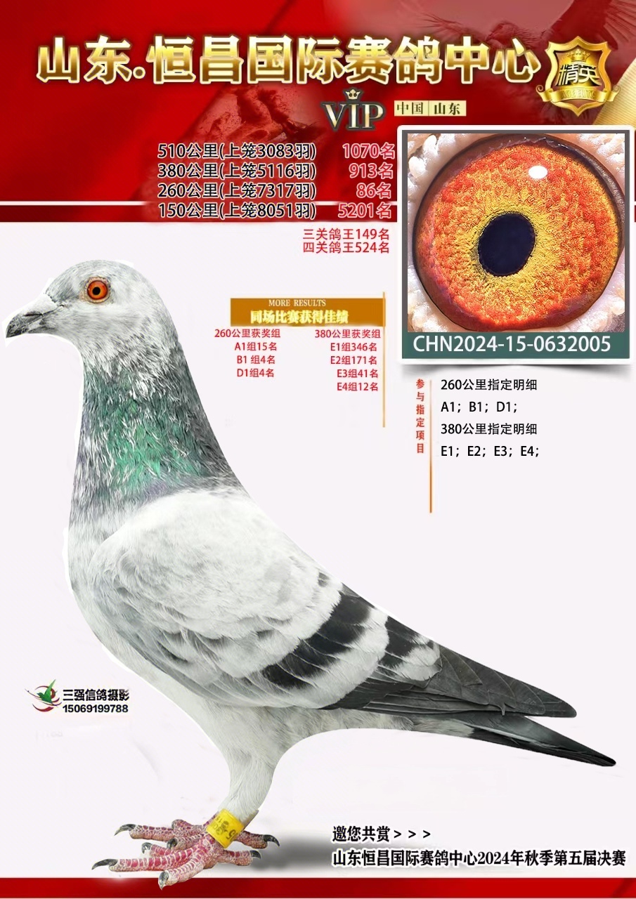 山东恒昌公棚100公里417名,150公里184名,255公里931名,350公里90名,517公里367名。四关鸽王13名,三关鸽王68位(麒麟花)。