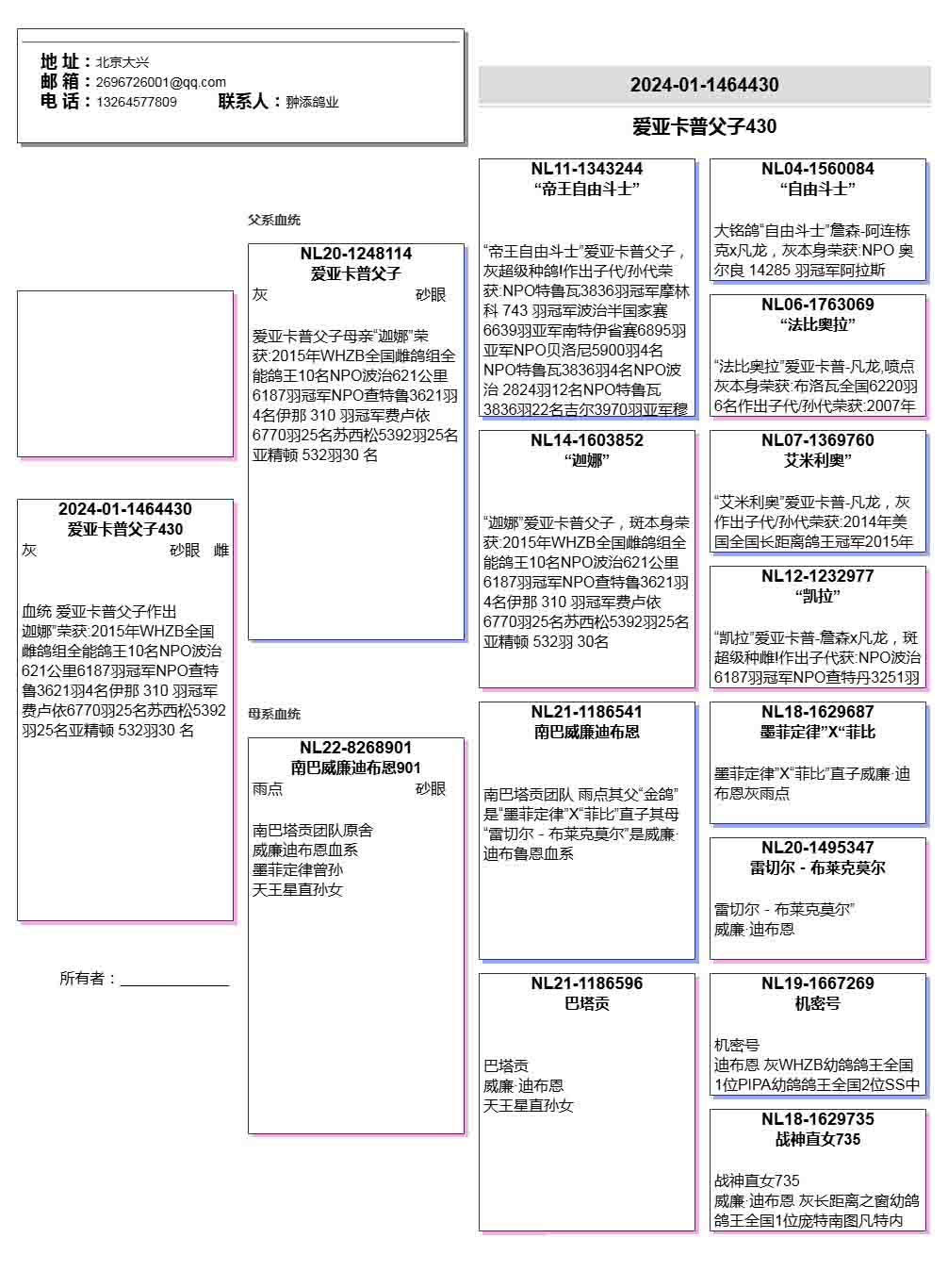 - 当前查看拍卖鸽:爱亚卡普父子作出430