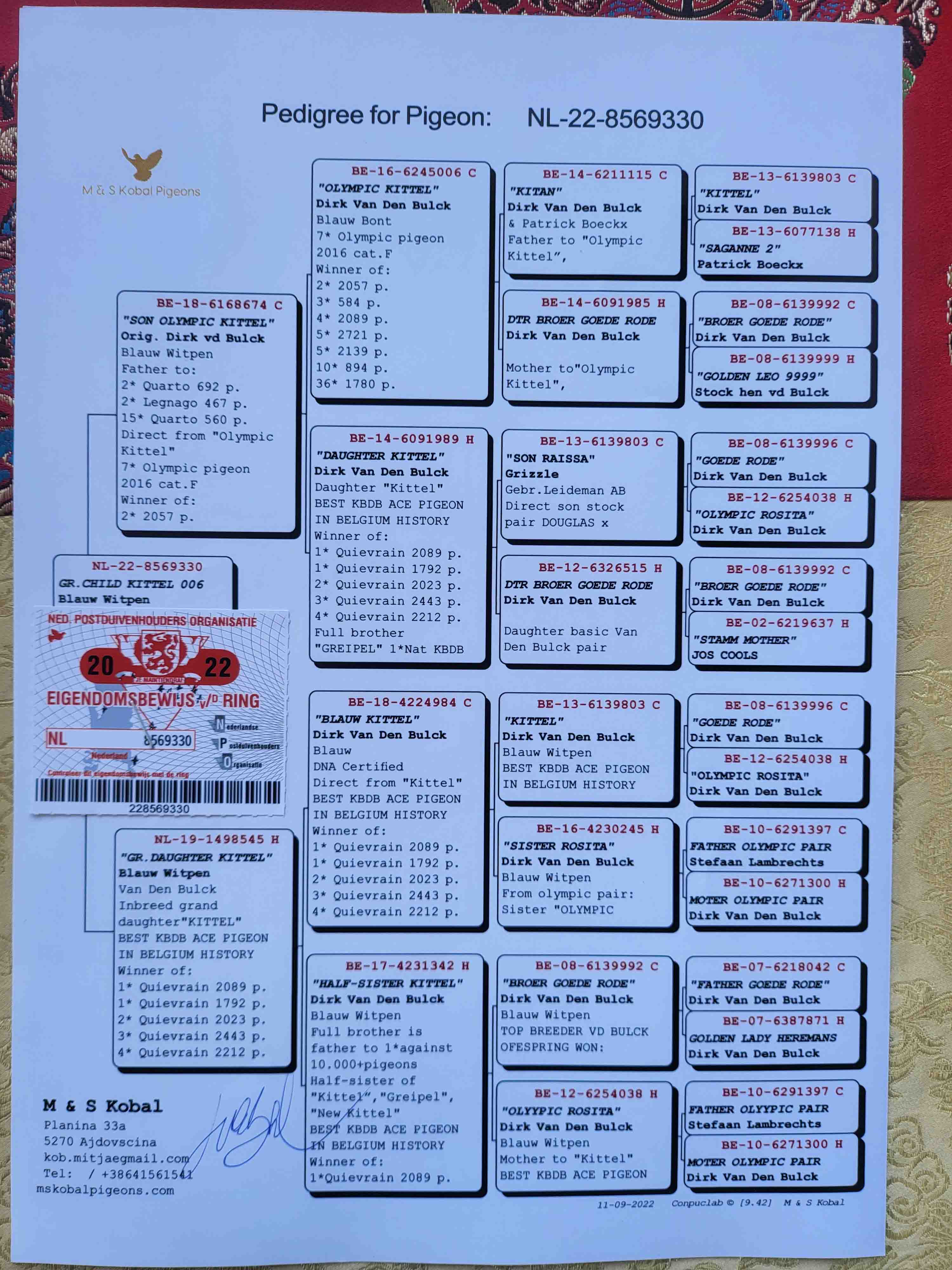 - 当前查看拍卖鸽:史蒂芬米塔科贝尔奥林匹克基特尔直孙330