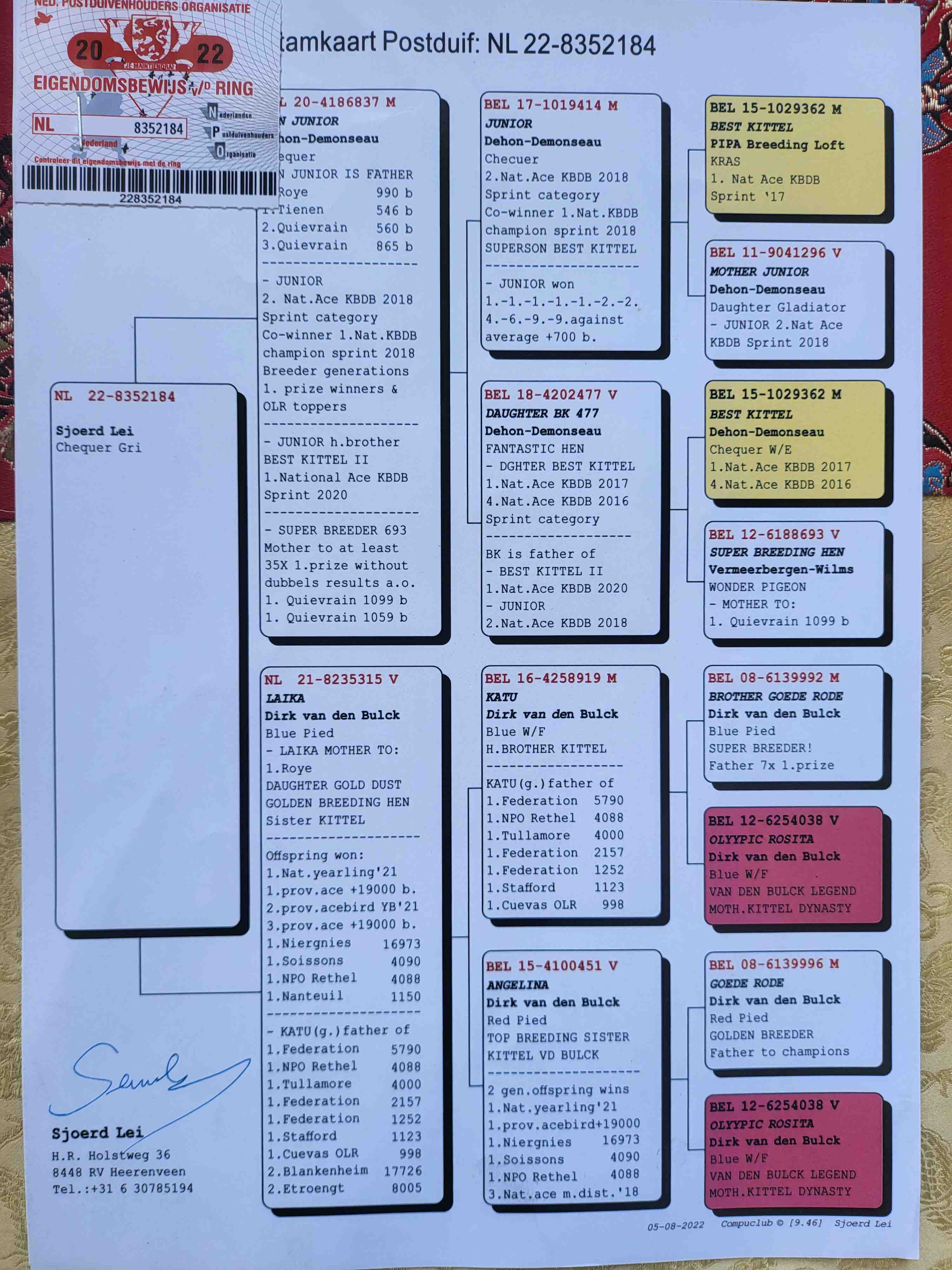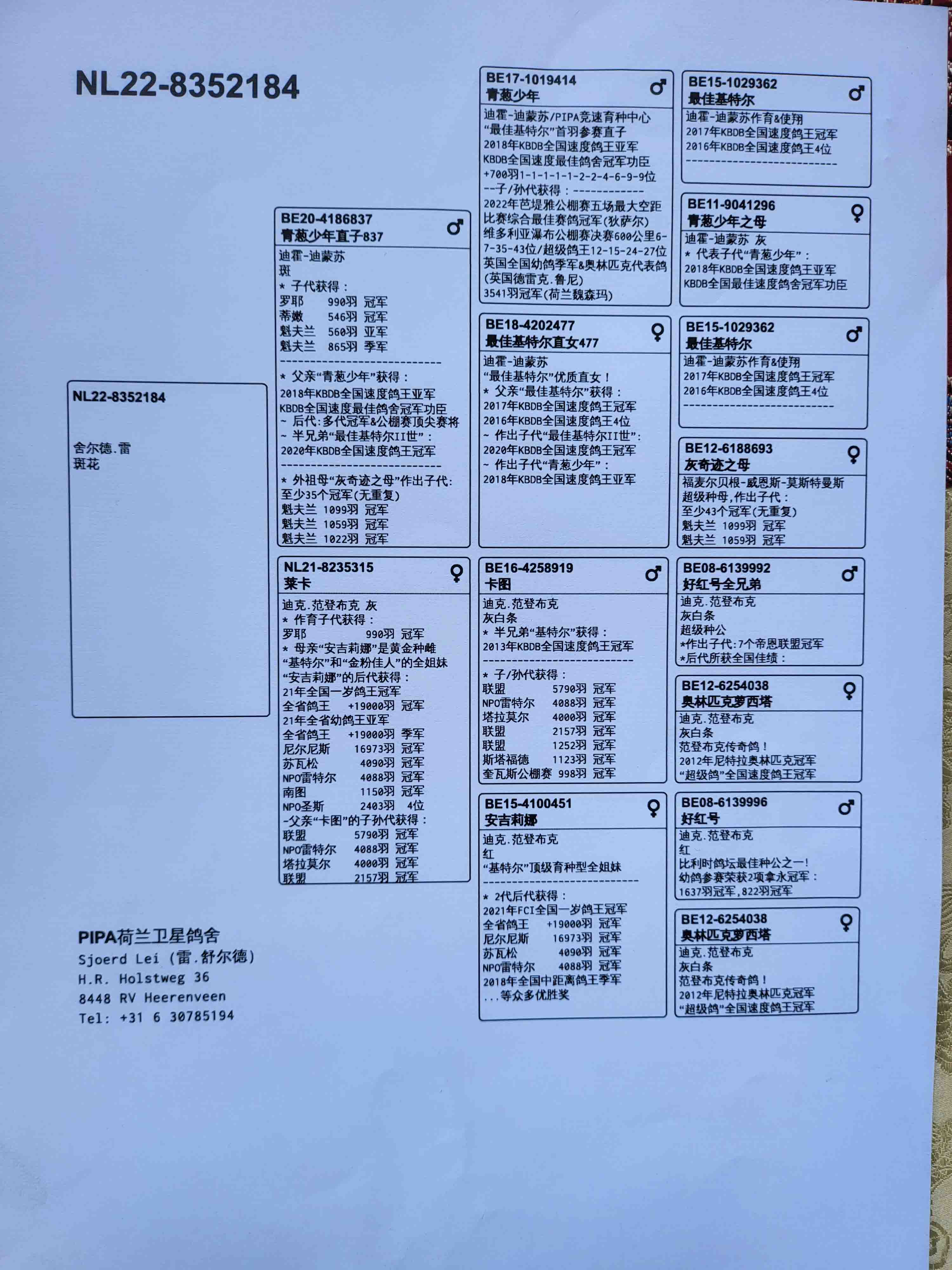 - 当前查看拍卖鸽:荷兰卫星鸽舍范登布克青葱少年直孙184
