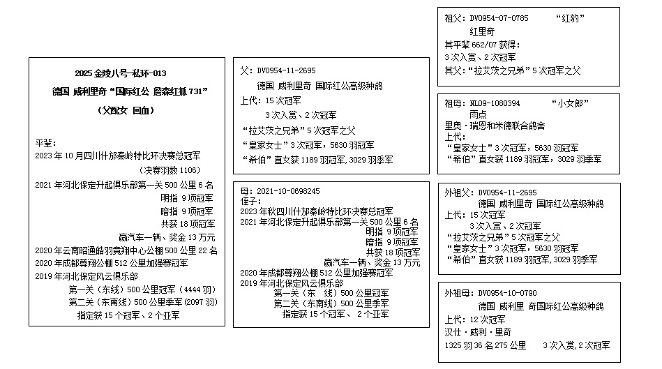 - 血统:德国 威利里奇“国际红公 詹森红狐731”